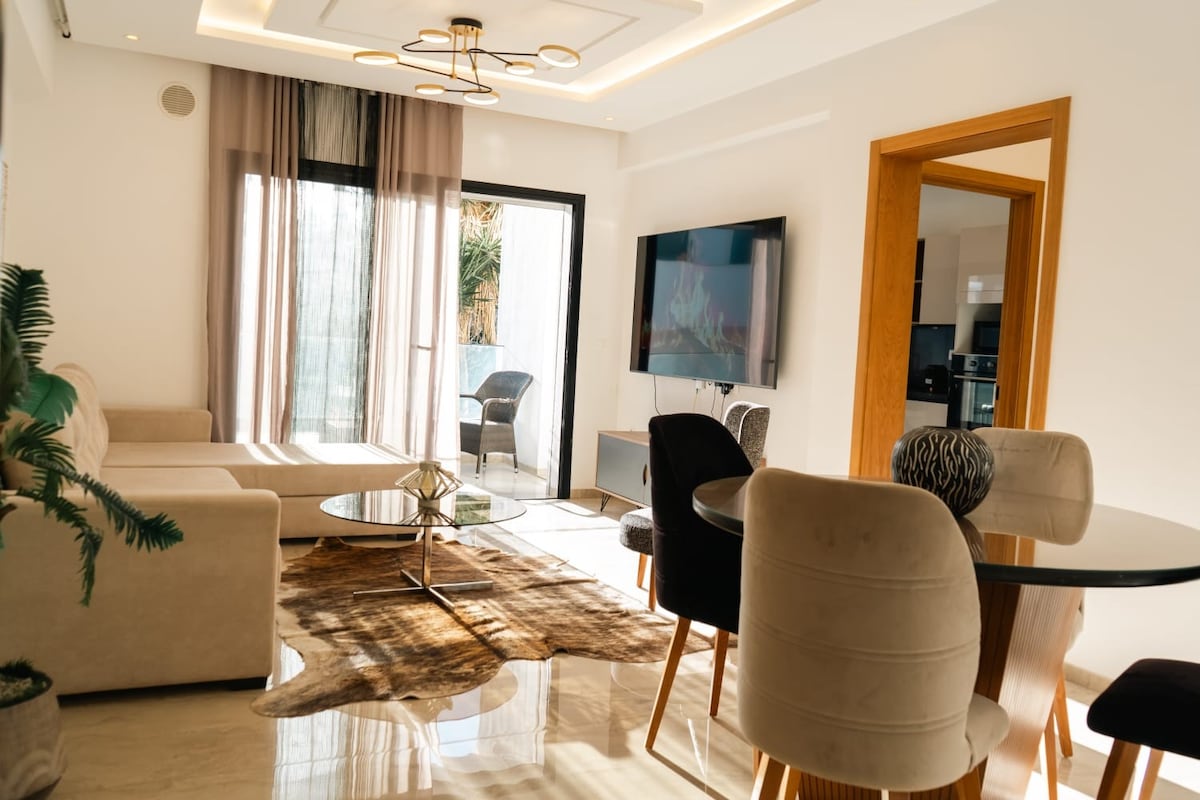¿Busca una estancia de lujo en el centro de Túnez? Ya sea que esté de visita por negocios o por placer, nuestro apartamento recientemente renovado está idealmente situado en el centro urbano norte en una zona tranquila y segura. Observaciones: - Está prohibido fumar en el apartamento, pero se puede hacer en el balcón. - Las fiestas están estrictamente prohibidas en el apartamento. - Está formalmente prohibido reservar el alojamiento para terceros.