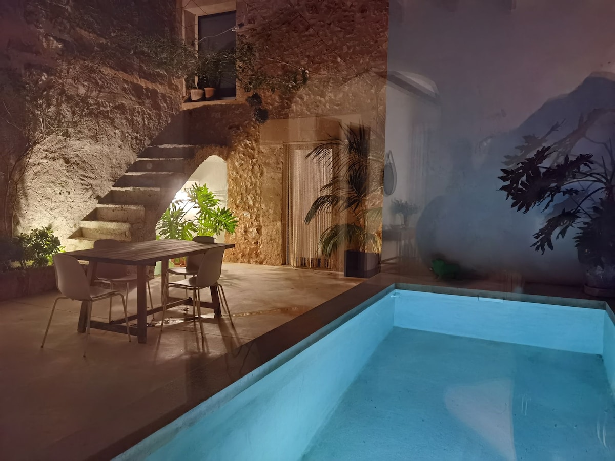 Autentica casa mallorquina con piscina privada (8,40x3,40 mt), situada en un pueblo del centro de la tradicional Mallorca. Restaurada con todas las comodidades y en una inmejorable localización para visitar todos los lugares de interés de la isla. parking delante la casa.
