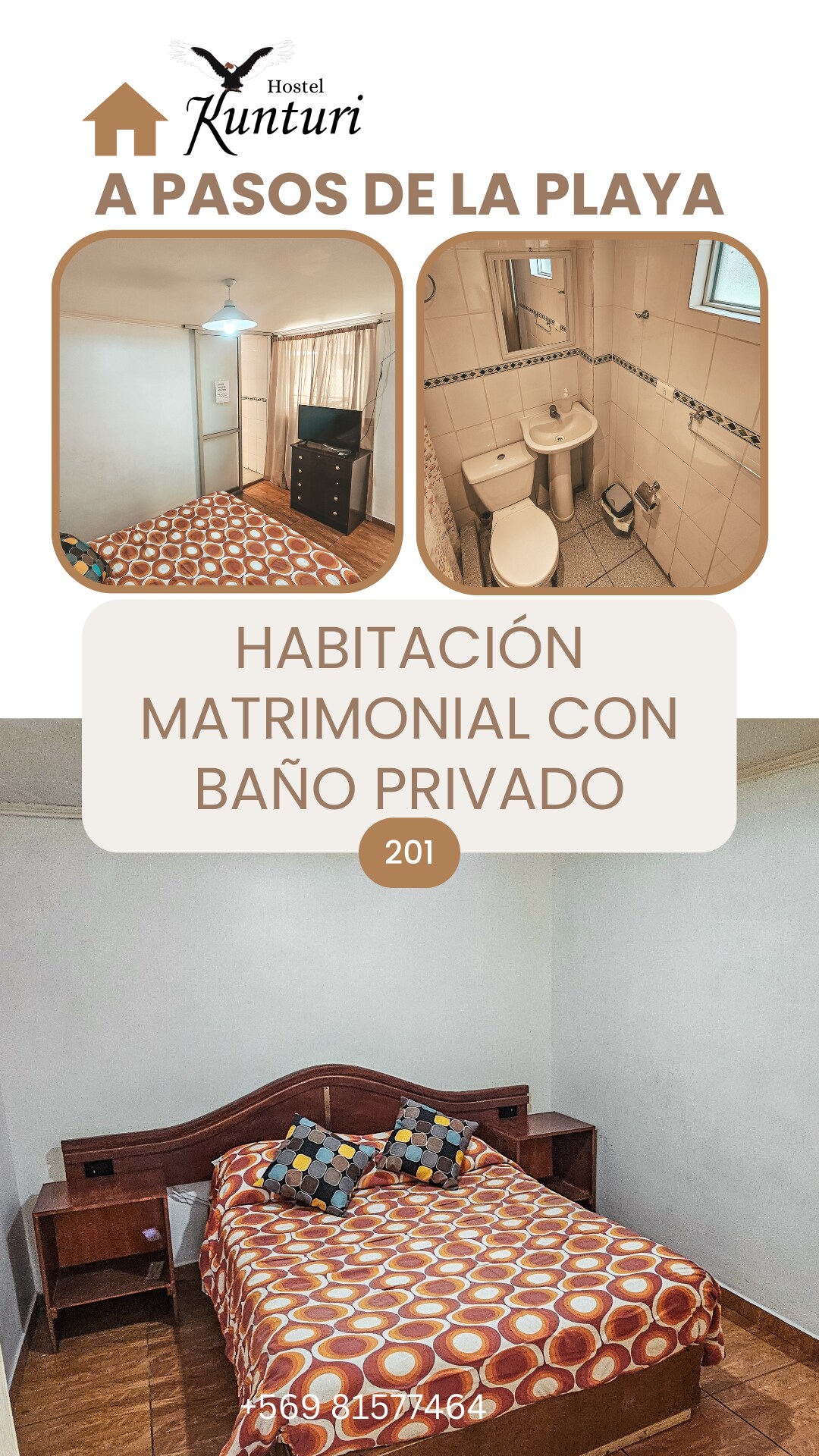 Alojamiento COMPLETO : En 2 piso. Ingreso a la casa compartido. 04 HABITACIONES (Cada habitación cuenta con una cama matrimonial y con baño privado en la habitación) Smart tv 55", 2 veladores, 1 cómoda, 1 espejo, toallas y Aire Acondicionado en Cada Habitación. Disponemos de tv Cable y Wifi.