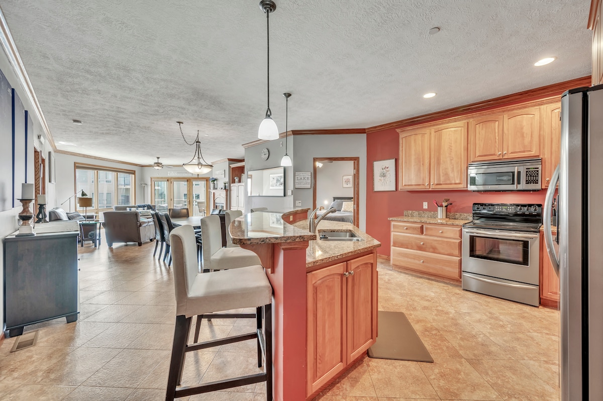 Apartamento de 3 dormitorios recién remodelado. 2 baños en Bridges Bay Resort. Imagina hacer una barbacoa en el patio mientras juegas en el patio, nadas en la piscina y contemplas el lago East Okoboji. Pasa tus días explorando las muchas actividades al aire libre que Okoboji tiene para ofrecer, disfrutando del parque acuático Boji Splash o simplemente relajándote junto al lago. ¡Este raro apartamento junto a la piscina y con vistas al lago viene con todas las comodidades! Hay mucho que hacer durante todo el año. ¡Deja que nuestra casa de vacaciones sea tu próxima escapada relajante!