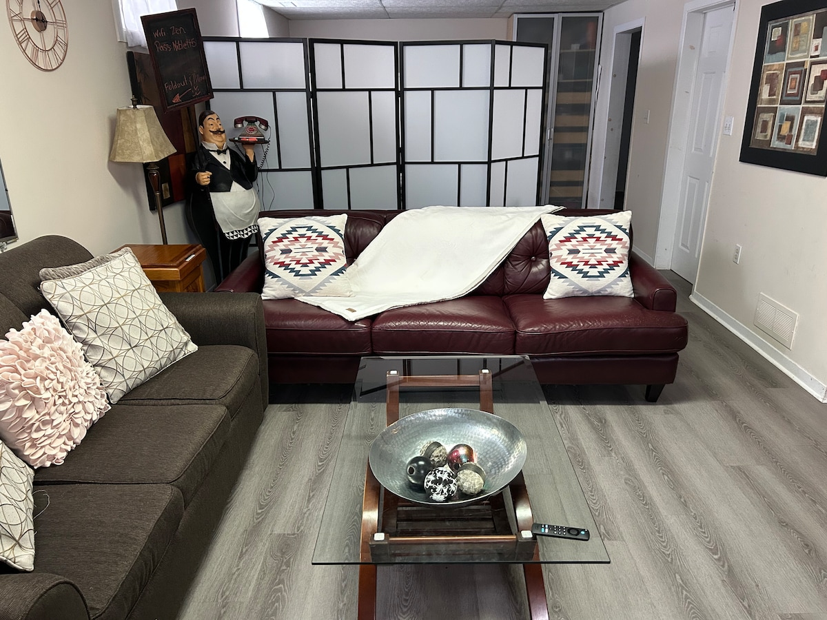 Separate entrance (via garage door closest to my front door), free parking, private (not shared), basement suite. Beautiful Arnprior! - 1 minute off highway 417 - 2 minutes walk to the mall (with grocery stores) fast food spots - No crime neighbourhood - 20 mins to Kanata (Canadian Tire Centre) - 40 mins to downtown Ottawa - 15 minutes to Mt. Pakenham - 30 mins Calabogie Peaks. Furnished with king size bed, double bed, fold out couch and 2 cots available upon request.