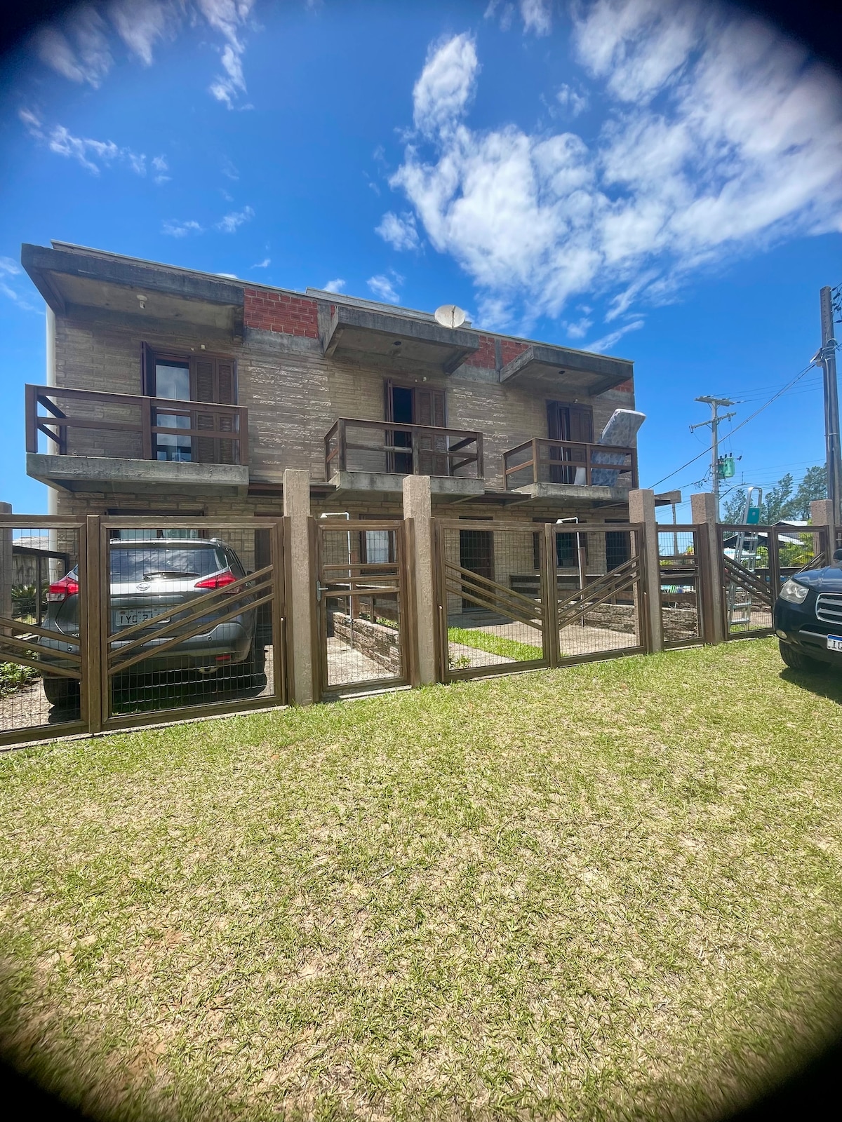 Apartamento en segundo piso, en propiedad frente al mar en terreno cercado con gran libertad y seguridad para los niños, en una calle con salida solo para peatones a la playa, en un ambiente familiar. A dos cuadras del mercado, a 30 metros de la franja de arena del mar de la costa norte de Rio Grande do Sul.
