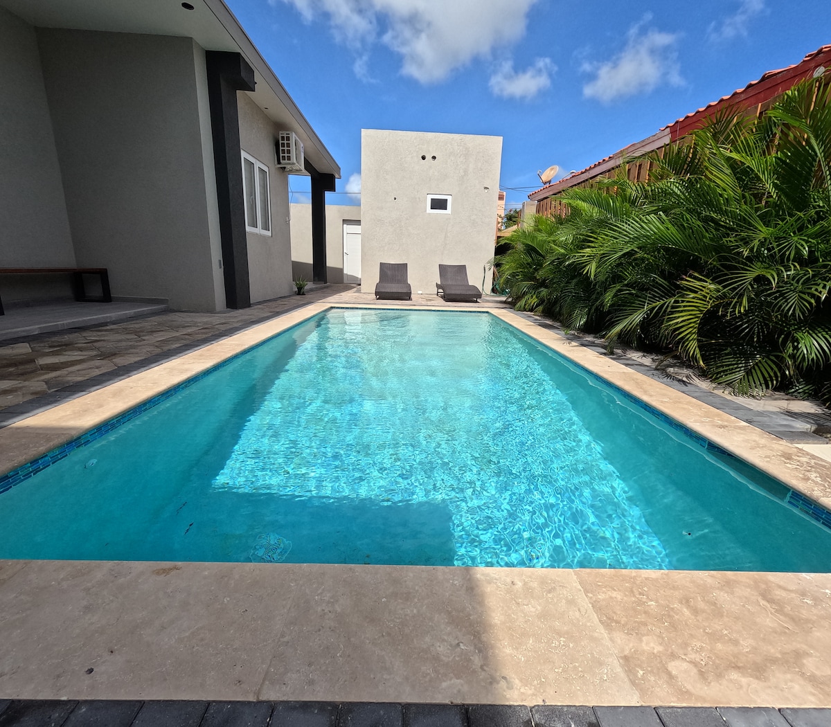 Escape to our Mediterranean villa and enjoy the white sands of Aruba the happy island, stay in a luxury apartment with the best comforts of a Caribbean home, entrance from the garden area, relax in the pool and enjoy our tropical garden in the hammock under the palms. PERFECT LOCATION *Palm Beach 400 meters walking *Noord supermarket 350 meters walking *Just a 4-minute drive from the restaurants, nightclubs and shopping. ~CHILDREN ARE WELCOME