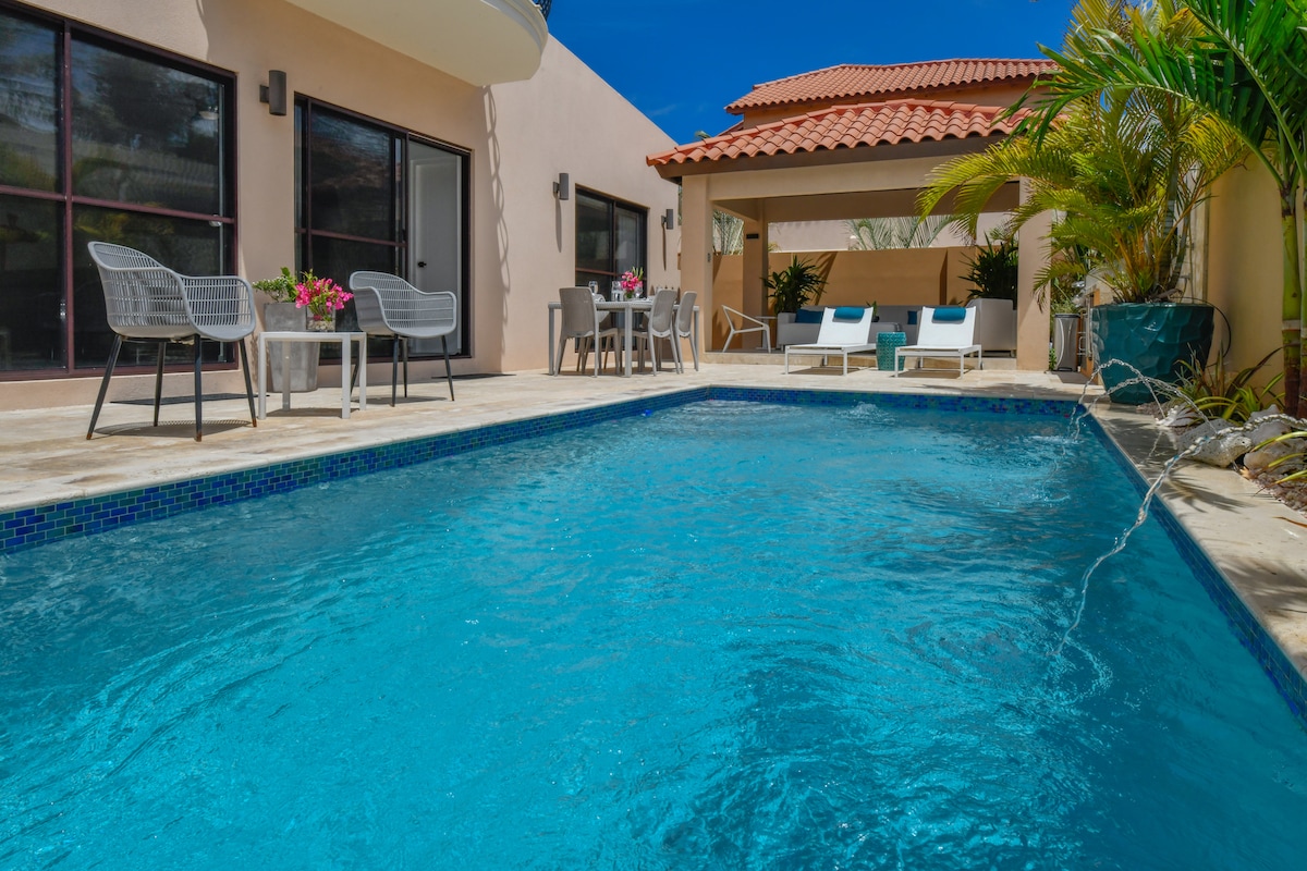 La casa forma parte de un pequeño y acogedor centro vacacional ubicado en el centro de la isla. Cerca de las playas de arena blanca y a poca distancia a pie de tiendas y restaurantes. Es limpia, decorada con buen gusto y moderna, con todas las comodidades y disponible para un máximo de 8 huéspedes con una piscina de estilo resort. Todas las habitaciones tienen aire acondicionado. Perfecto para familias, reuniones, etc. (grupo grande de personas). Tu anfitrión está disponible para cualquier pregunta (holandés, inglés, español). Ven a sentir el ambiente caribeño en nuestro centro vacacional La Felicidad.