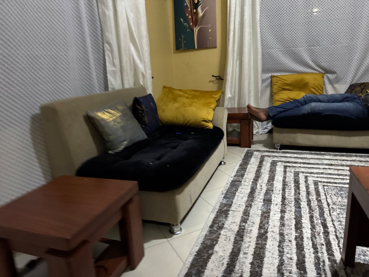 Cozy one-bedroom apartment in Chama-Tengeru, Arusha. Features a comfy sitting room, fully equipped kitchen, bathroom, smart TV, free WiFi, air conditioning, and a dedicated working space. Enjoy free parking and exterior security cameras. Perfect for families, couples, or solo travelers. Just 45 mins from Kilimanjaro international Airport, 15 mins from Arusha town, 10 mins from Lake Duluti and only a 2 mins walk from the Arusha-Moshi road. Relax and Experience Arusha from this cozy retreat!