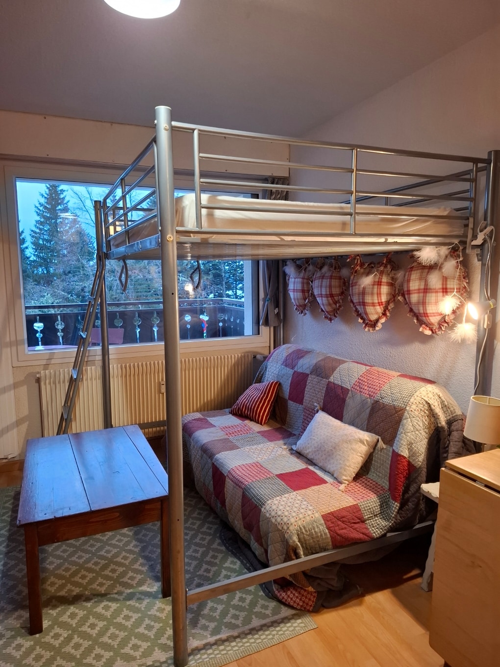 Venga a disfrutar de este gran T1 con altillo completamente renovado en 2024. Situado en el último piso del edificio, ¡tranquilidad y vistas impresionantes garantizadas! Situado en pleno centro de Allevard, está cerca de todos los comercios y de las Termas. El alojamiento dispone de una habitación con cama doble, un sofá convertible en cama doble en el salón, y un sofá convertible en cama doble en el altillo, por lo que pueden dormir cómodamente hasta 6 personas.