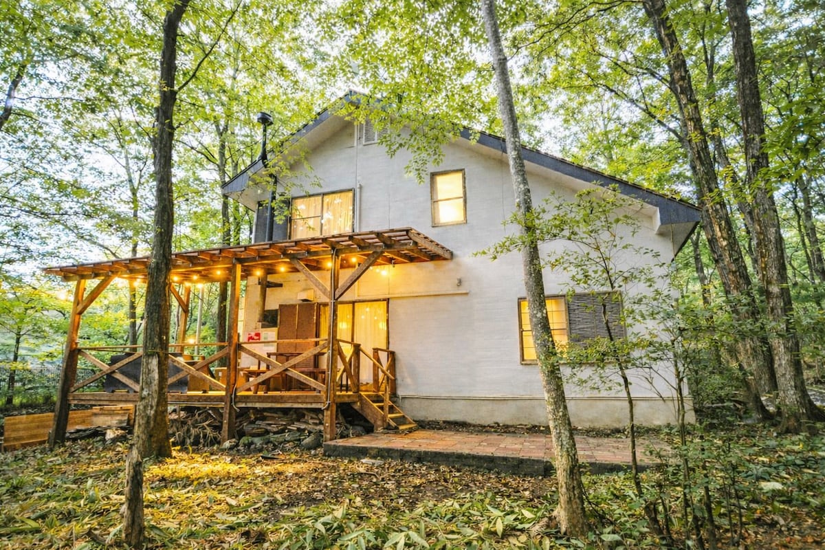 Alquiler vacacional en la naturaleza en una base secreta en el bosque. [Travel space Villa Nasu Kogen] es una villa privada que puede ser disfrutada tanto por adultos como por niños en la exuberante casa de vacaciones Nasu. Una base secreta para pasar el rato con amigos u esconderte de tus padres para hablar con tus amigos. Sigue cada camino, reúnete con tus amigos que normalmente no pueden reunirse y tu familia llegará a una base secreta en el bosque. Hay un espacio donde puedes jugar duro, hablar como lo hiciste en esos días y hacer sonreír a adultos y niños. La cubierta de madera techada está equipada con una parrilla de gas de estilo americano. También podés disfrutar de un asado al aire libre en el bosque y tener una conversación con la naturaleza. También puedes bañarte en el baño boscoso desde las grandes ventanas. Relájate y respira hondo en la bañera para alejarte del ajetreo de la vida cotidiana. Hay hamacas y juegos para niños en el jardín, y un muro de escalada en el living, para que los niños puedan jugar con tranquilidad. Mientras sientes las cuatro estaciones de Nasu, puedes buscar bellotas con tus padres e hijos, como algún día.