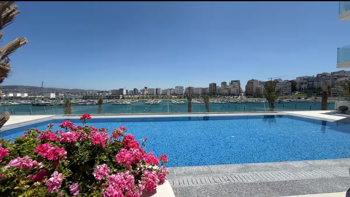 **Merci de lire la description jusqu’à la fin** Découvrez notre charmant appartement à Tanger, idéalement situé dans un complexe fermé et sécurisé, à deux pas du Movenpick, du Casino de Tanger, ainsi que des cafés et restaurants. Profitez d’une magnifique terrasse spacieuse avec vue imprenable sur la baie de Tanger, parfaite pour un café le matin ou un apéritif au coucher du soleil. Idéal pour couples et familles en quête d’une escapade inoubliable.