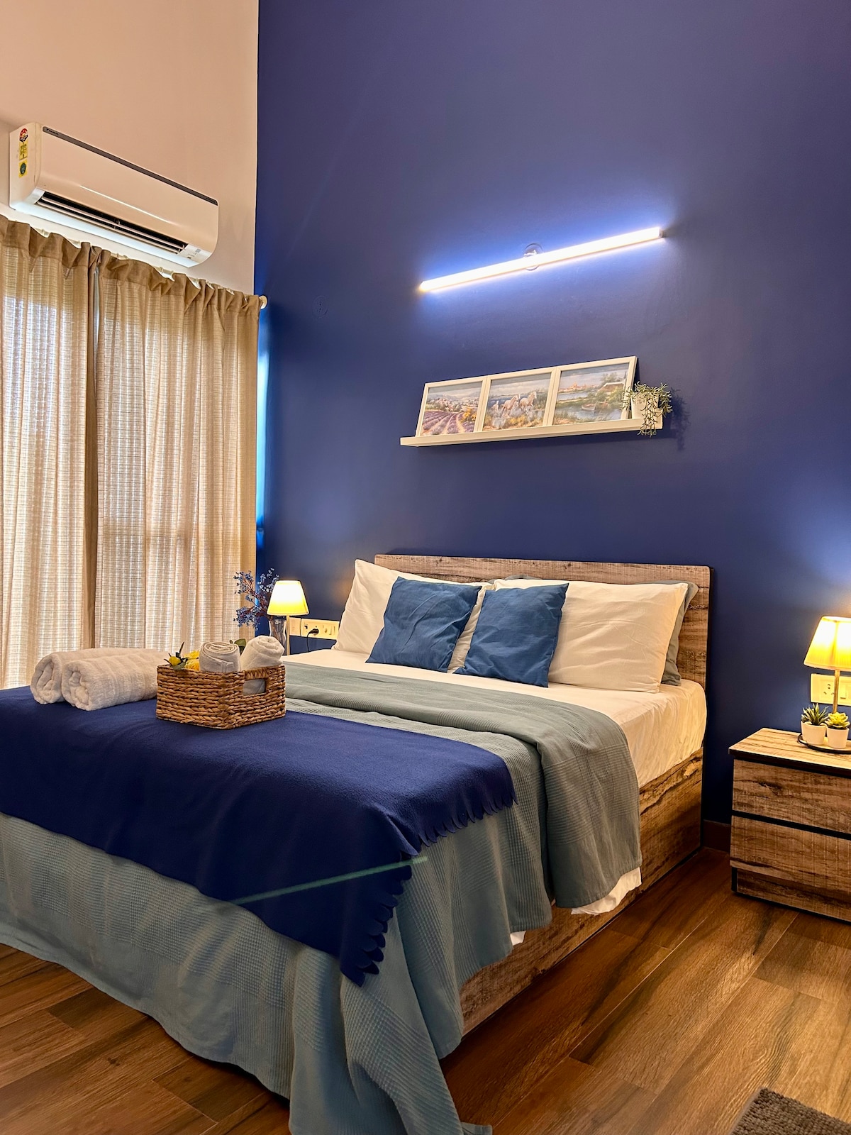 Ubicado en el corazón del exclusivo Assagao, se encuentra un apartamento 2BHK totalmente equipado con vistas a la piscina, situado en un lujoso complejo. Este departamento es la casa de una artista durante los días que está en Goa. Con una ubicación céntrica, es la base ideal para tu escapada a Goa, ya seas amante de la comida, amante de la playa o simplemente quieres relajarte junto a la piscina. El apartamento, una fusión de estética wabi-sabi contemporánea y japonesa, también muestra las obras de arte personales del artista, ¡todas ellas seguramente inspirarán!