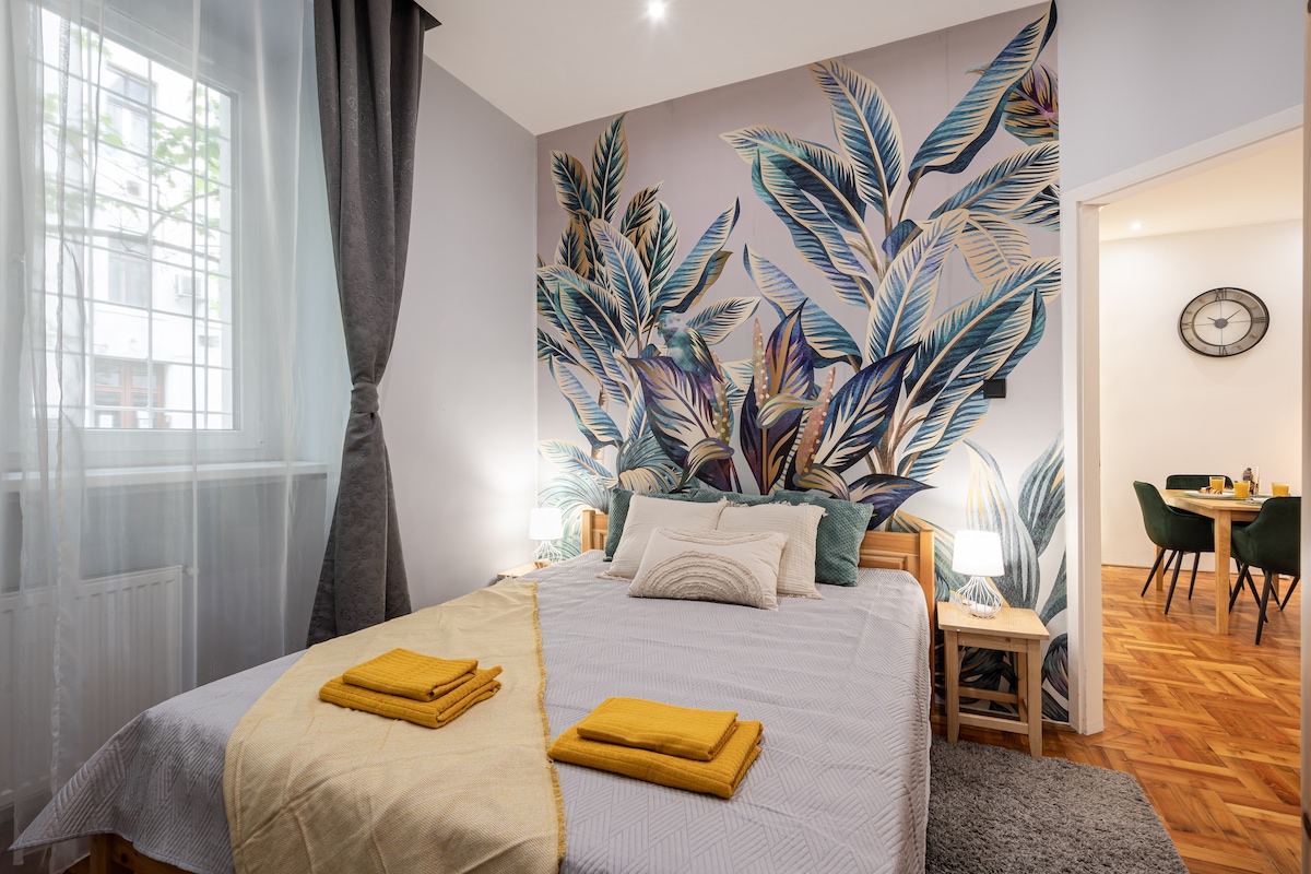 Our apartment is in the heart of Budapest by the Synagogue. The area is lively and full of character: shops, 24/7 stores, cafés and restaurants offering Hungarian, Italian, Indian, Turkish and many other cuisines are just steps away. Famous ruin bars start around the corner. Szimpla Kert is about 200m, Deák Square and the Budapest Eye are a 5-6 minute walk, and the Danube is roughly 10 minutes. Rudas and Gellért Baths are only a few bus stops away. Cosy balcony and an elevator for your comfort.