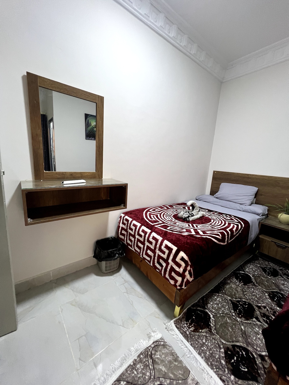Located in Aswan, in El-Aqad Extension area on Benzina El Taawon Street (before El Farouk Mosque), our modern building offers comfortable private rooms and furnished apartments — perfect for travelers, families, and groups. The property features 6 floors and 6 well-equipped rooms, designed to feel like a cozy hostel with the privacy of an apartment. Each unit includes air conditioning, Wi-Fi, a fully equipped kitchen, and access to a shared living area with a TV