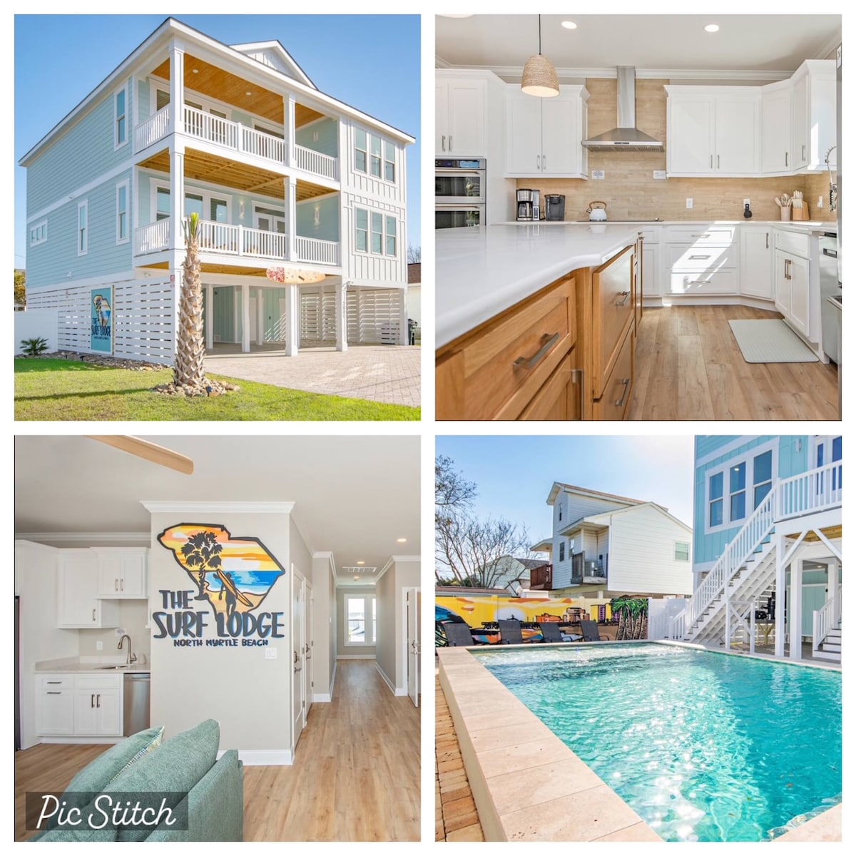 Family fun for all ages, located near the beach and intercoastal waterway. Safe central location with colorful artsy fun! New 2026 pinball. Lavish modern décor with comfortable King & Queen bedrooms. A short drive to family favorite Cherry Grove Beach. High tech sound & lighting systems, Dolby Atmos, LG OLED TVs, streaming & PS5 game system, arcade, foosball and new pinball machines. Tesla car charger. Full featured gourmet kitchen, Weber charcoal grill, and fire pit. Ready for play!