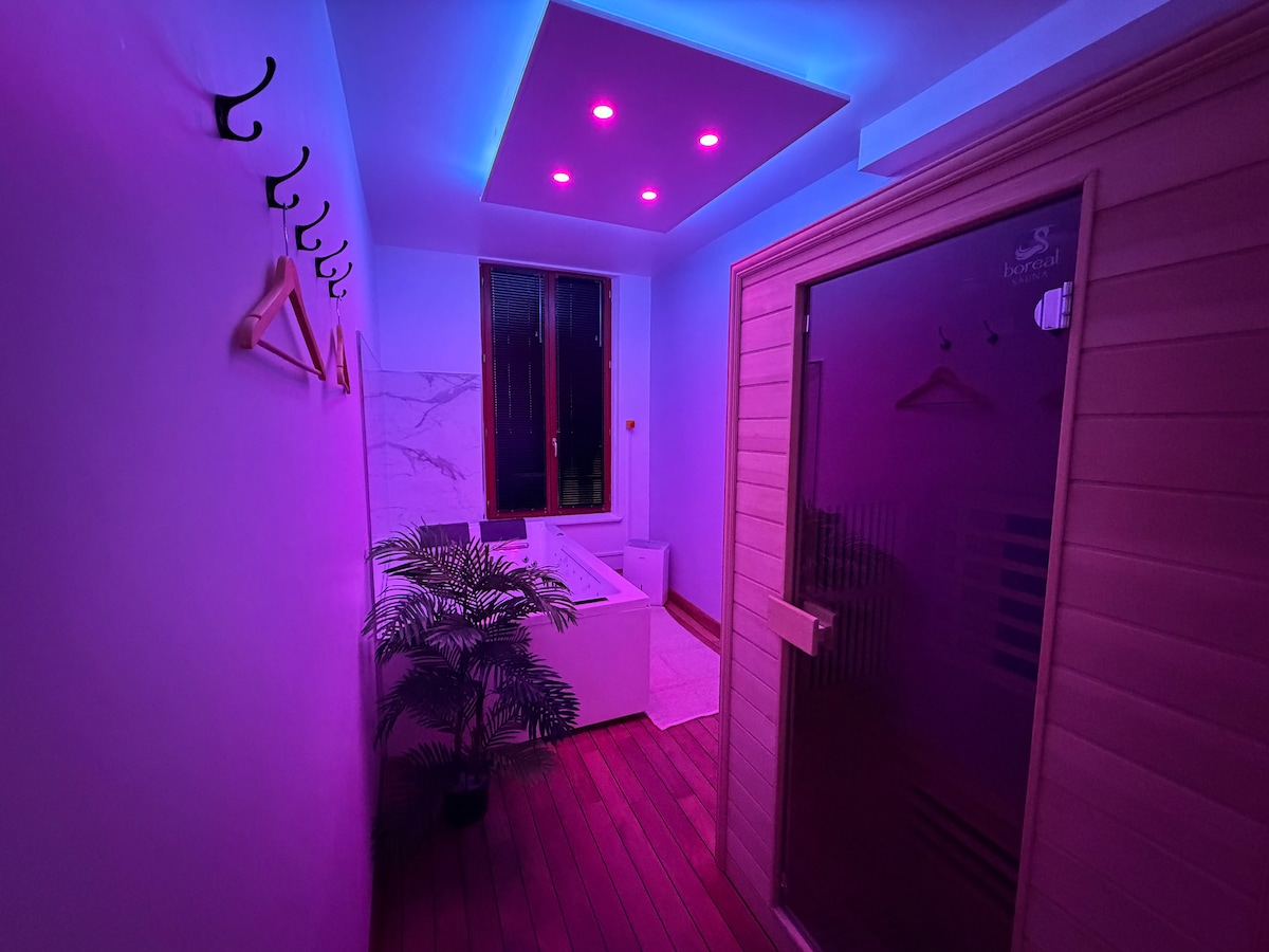 Looking for a romantic and rejuvenating escape? UrbanSpa welcomes you at "Le Romantique Chic", a refined and intimate cocoon with baroque charm, nestled in a peaceful inner courtyard, right in the heart of a pedestrian street. 🖤✨ SELF CHECK-IN from 5:30 p.m. · Check-out until 12:00 p.m. ➡ Private SAUNA and BALNEOTHERAPY SPA, accessible at any time (spa jets active from 8:00 a.m. to 10:30 p.m.) Queen-size bed, black and gold décor, soft lighting, and an elegant atmosphere 🛁🌹