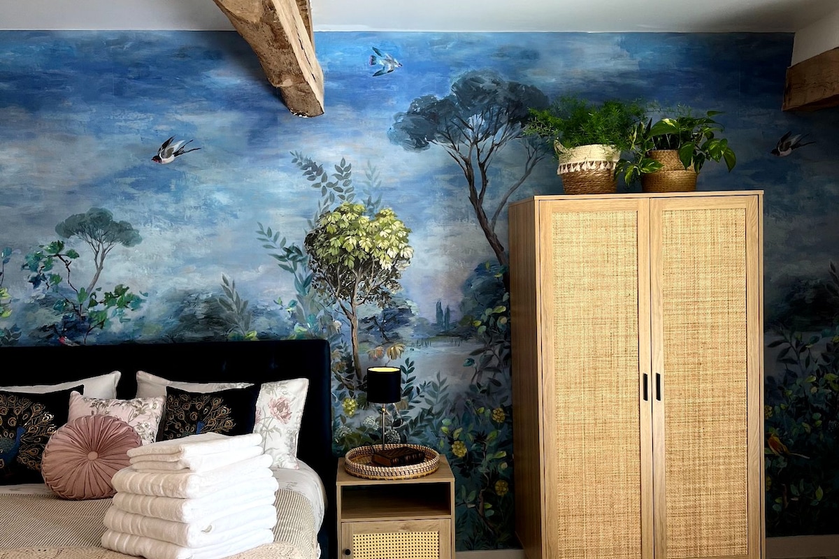 Recientemente reformado, conservando su encanto rústico tradicional, el lugar perfecto para relajarse y desconectar. Cuenta con entrada propia, cocina, comedor y sala de estar con chimenea de piedra original de Charantais y un dormitorio con baño privado. Los grandes ventanales aprovechan las impresionantes vistas al campo y los espectaculares amaneceres. Si eres un fan de la vida silvestre, no te decepcionarán los visitantes habituales de ciervos, ardillas rojas, grullas migratorias y una de nuestras favoritas, la abubilla.