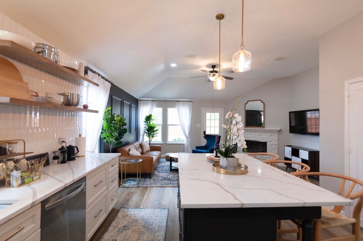 Gorgeous 3 Bedroom and 2 Bath with modern decor and stunning remodeled kitchen equipped with everything you need to feel like home. Feel like staying in? Play a game of pool or lounge in the inviting outdoor patio for a bbq or toast some s'mores while you sit around an outdoor firepit. All rooms are equipped smart TVs, memory foam mattresses, and ceiling fans along with AC to keep you cool and comfortable Great location and only 3.1 miles from Little Elm Park - Lake Lewisville.