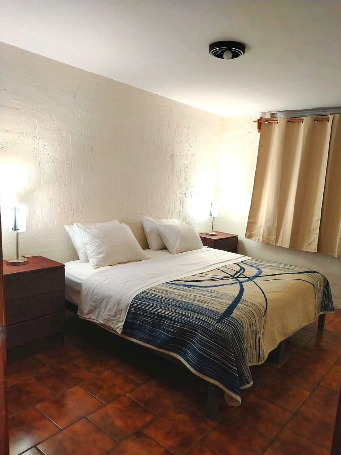 Disfruta de este alojamiento en el corazón de Zapopan. Ideal para un viaje de placer o de trabajo. Es una habitación muy amplia independientemente, con baño totalmente privado, cuenta con frigobar y smart tv. A tan solo 3 cuadras encontrarás una gran variedad de atractivos turísticos, recorre el andador 20 de noviembre desde el arco de entrada hasta la basílica de Zapopan en donde podrías encontrar una gran variedad de restaurantes, cafeterías, bares, museos y edificios históricos.