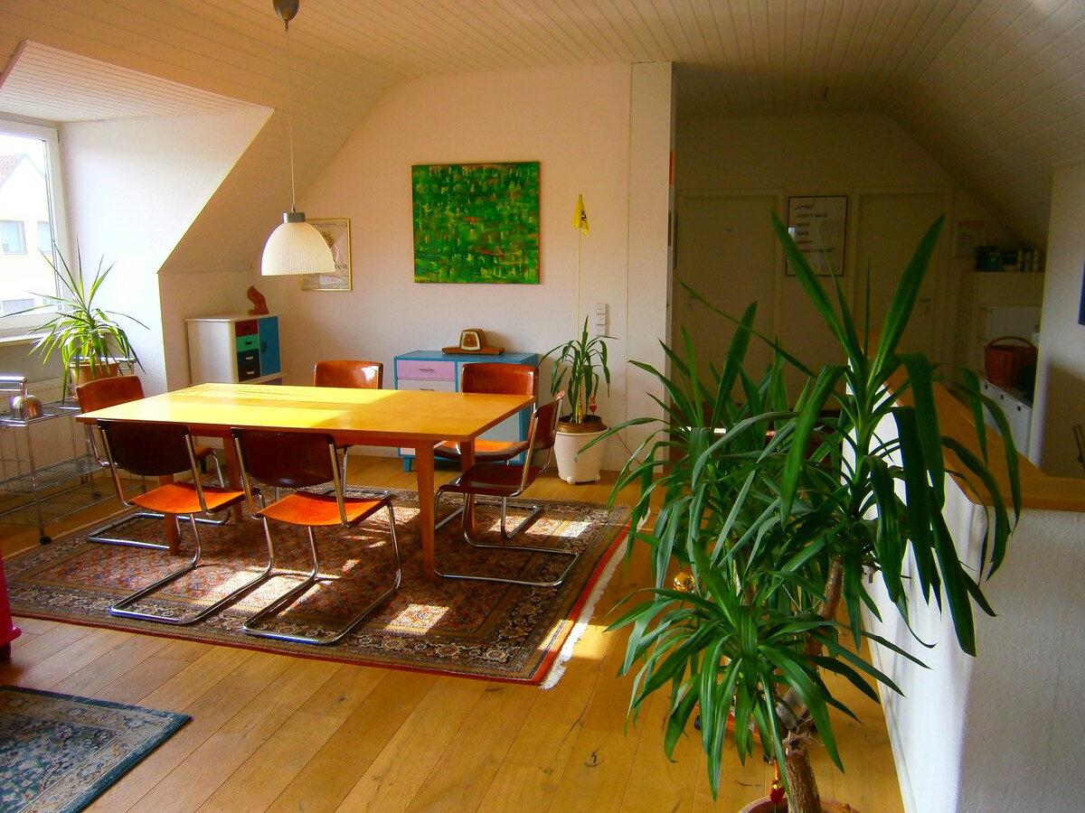 Departamento de lujo en una granja de 500 años de antigüedad Departamento grande y exclusivo (157 m²) con encanto histórico y comodidades modernas: Internet de alta velocidad de 250 Mbit, Netflix y Prime Video Sauna, estufa a leña, parrillas interiores y exteriores, ping-pong, dardos. Jardín de 185 m² Echá un vistazo a nuestro departamento de vacaciones Sunshine (en la misma casa, 121 pies cuadrados, capacidad para 6-7 personas), con las mejores calificaciones: 5.0/5.0 en Airbnb y 9.8/10 en FeWo-direkt. Qué pena. Hacé clic en mi foto de perfil y, luego, otra vez.