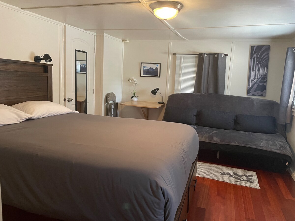 Apartamento tipo estudio de 600 pies cuadrados en la mejor calle de Burbank. La unidad está adosada a la casa principal, pero tiene una entrada independiente. Ideal para viajeros de negocios o parejas que quieran estar cerca del centro de Los Ángeles, Hollywood Studios y senderismo. A poca distancia a pie (1/2 milla) del hermoso centro de Burbank, que cuenta con muchos restaurantes y cines. Los huéspedes podrán acceder a su propio estudio adjunto a la parte trasera de la casa. - Tarifa de limpieza de 50 USD. - Prohibido fumar, no se permite fumar en las instalaciones. - No se admiten mascotas.