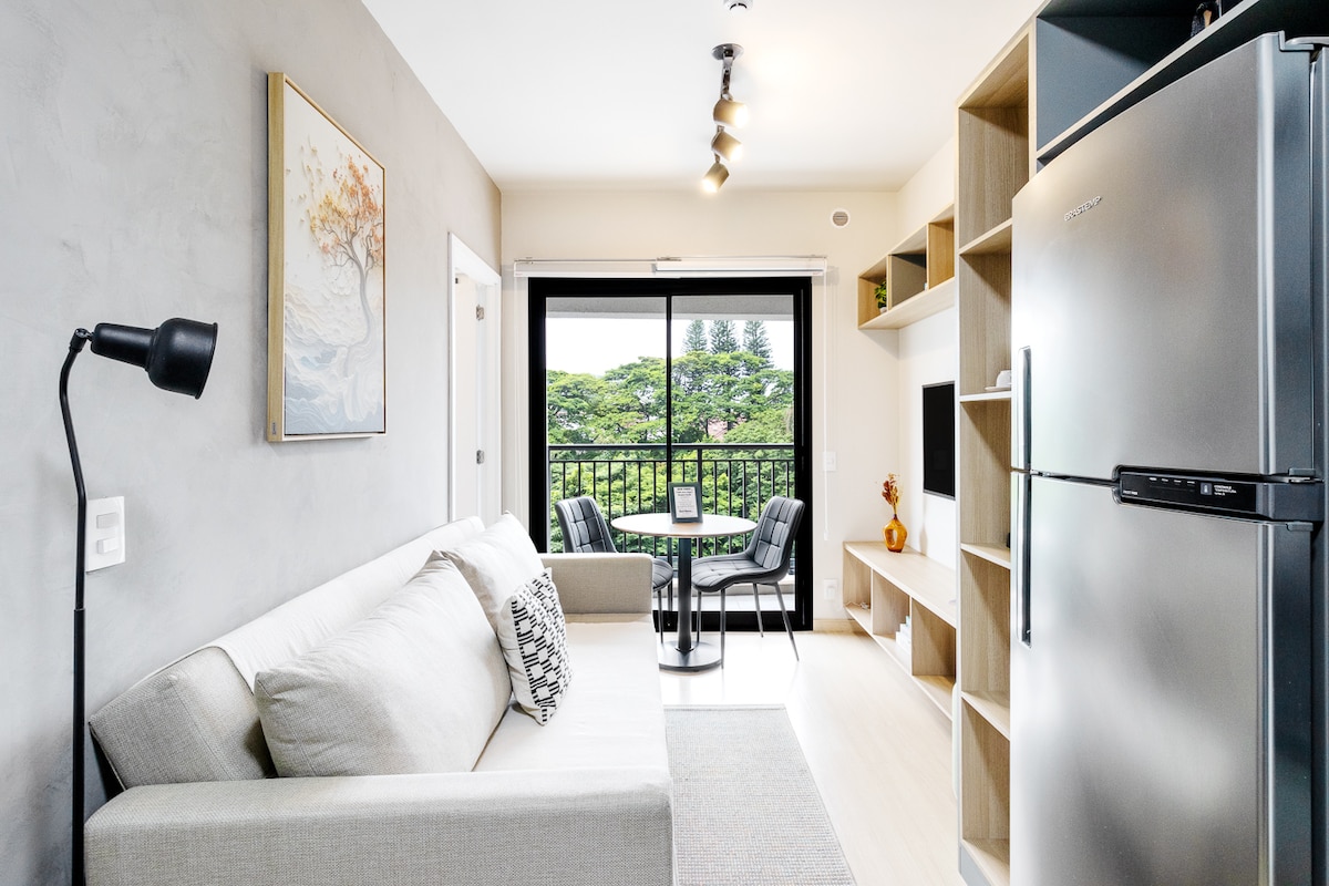 Apartamento entero renovado en Pinheiros a menos de 5 minutos del metro Oscar Freire, con 2 balcones. Todo nuevo, muebles, cocina equipada, 2 televisores inteligentes, Wi-Fi 600Mb, aire acondicionado Q/F en el dormitorio y la sala de estar, cama king, sofá cama queen, horno, microondas, cafetera, filtro de agua, ropa de cama de alta calidad y todo lo que necesitas para una estancia perfecta. Cerca de bares, restaurantes, supermercados a pocas cuadras del Hosp. das Clínicas y Paulista. Seguridad las 24 horas, gimnasio, estacionamiento con 2 plazas, piscina.