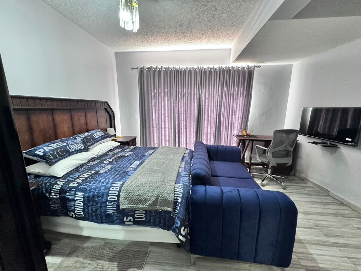 Te damos la bienvenida a tu elegante departamento de 1 dormitorio en Harare City, en Avenues, cerca del distrito financiero, embajadas, tiendas y restaurantes. A poca distancia de Avondale, Belgravia, Belvedere, Milton Park, Alex Park, Newlands, hospitales, clínicas y laboratorios. Disfrutá de wifi ilimitado, DSTV Premium y Netflix, con energía de respaldo para iluminación, wifi, TV y carga. 🌸 Perfecto para estadías cortas y largas, con un 5 % de descuento semanal (más de 7 noches) y un 15 % de descuento mensual (más de 28 noches).
