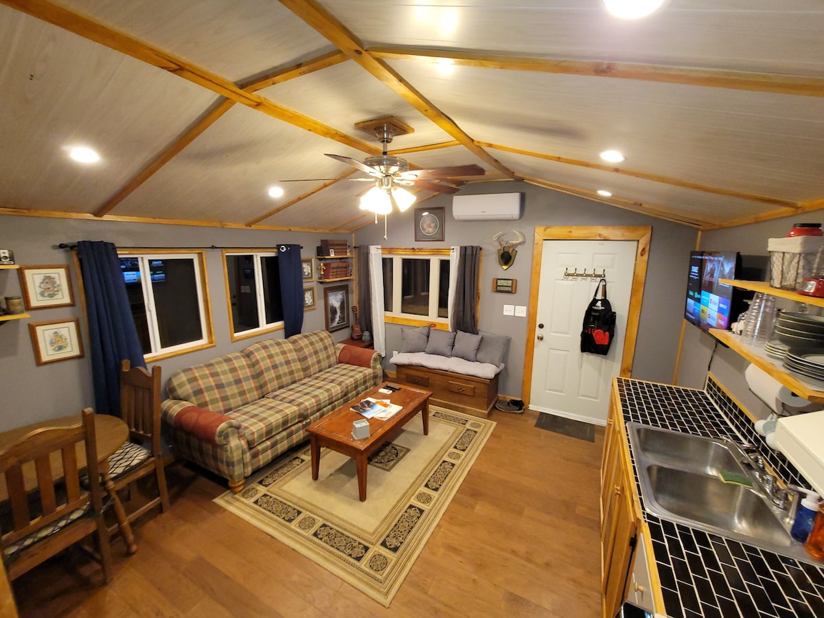 Nuestra pequeña cabaña cómoda y pintoresca tiene un estilo propio con comodidades modernas y una sensación hogareña. Ubicada cerca del borde del agua, puedes disfrutar de la noche sentado en la terraza y escuchar a la naturaleza cantar o sentarte alrededor de un fuego y contemplar las estrellas. Atención: Los huéspedes que deseen realizar estancias largas deben ponerse en contacto con nosotros y consultar la programación, incluso si las fechas están bloqueadas. Si tienes alguna pregunta sobre una hora de llegada anticipada, no dudes en ponerte en contacto con nosotros.