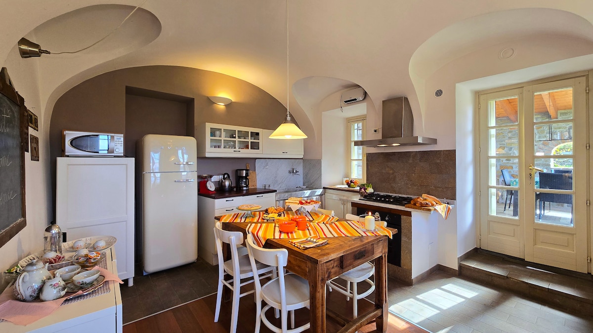 Casa situata in un piccolo borgo in collina sull' Appennino Piemontese tra boschi di querce e castagni con possibilità di fare escursioni a piedi o con mountain bike. Si possono osservare frequentemente daini e caprioli. A breve distanza si puo' ammirare la torre di Grondona unico resto del castello dei Fieschi Doria del XII secolo