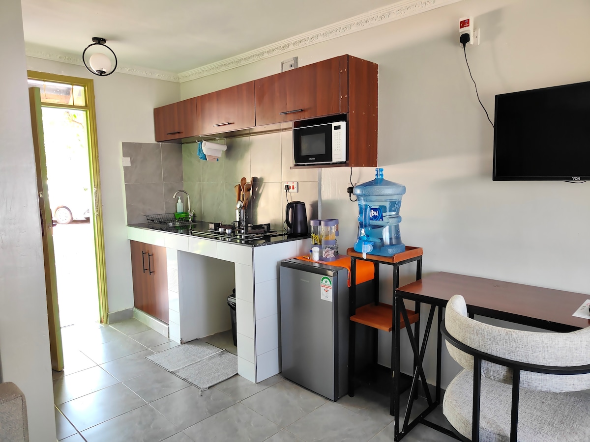 Te damos la bienvenida a nuestro elegante BnB en Nati Apartment, ¡tu escapada perfecta! Amueblado cuidadosamente con una decoración moderna y una cama de muelles súper cómoda para noches de descanso. Disfrutá de una conexión wifi rápida de Safaricom, relajate en un espacio tranquilo con hermosas vistas y relajate sabiendo que estás a solo minutos del aeropuerto y de la carretera principal. No importa si estás aquí por trabajo o por placer, nuestra ubicación es increíblemente accesible e ideal para una estadía sin problemas y sin estrés.