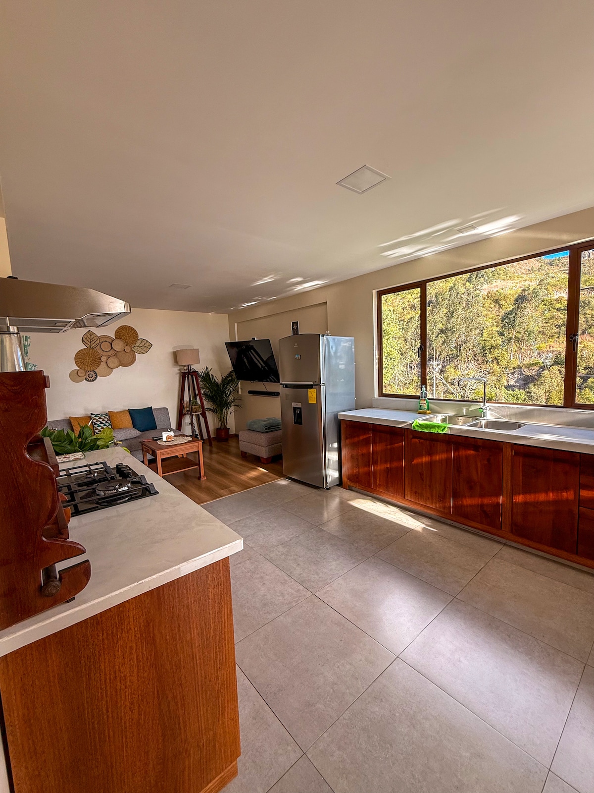 Absorba la relajante luz y calidez que penetra todo el espacioso ambiente a travez de las grandes ventanas y tragaluces. Relájate debajo de unos amplios cielos raso de 3 metros en las habitaciones y uno abovedado de 6 metros en la cocina abierta estilo americano. ⚡️ agua caliente, Wi-Fi y luz para tus dispositivos las 24/7 gracias al sistema de baterías de respaldo. Ojo: algunos electrodomésticos de alto consumo, cómo el secador de pelo y la tetera, no funcionan durante los cortes de energía.