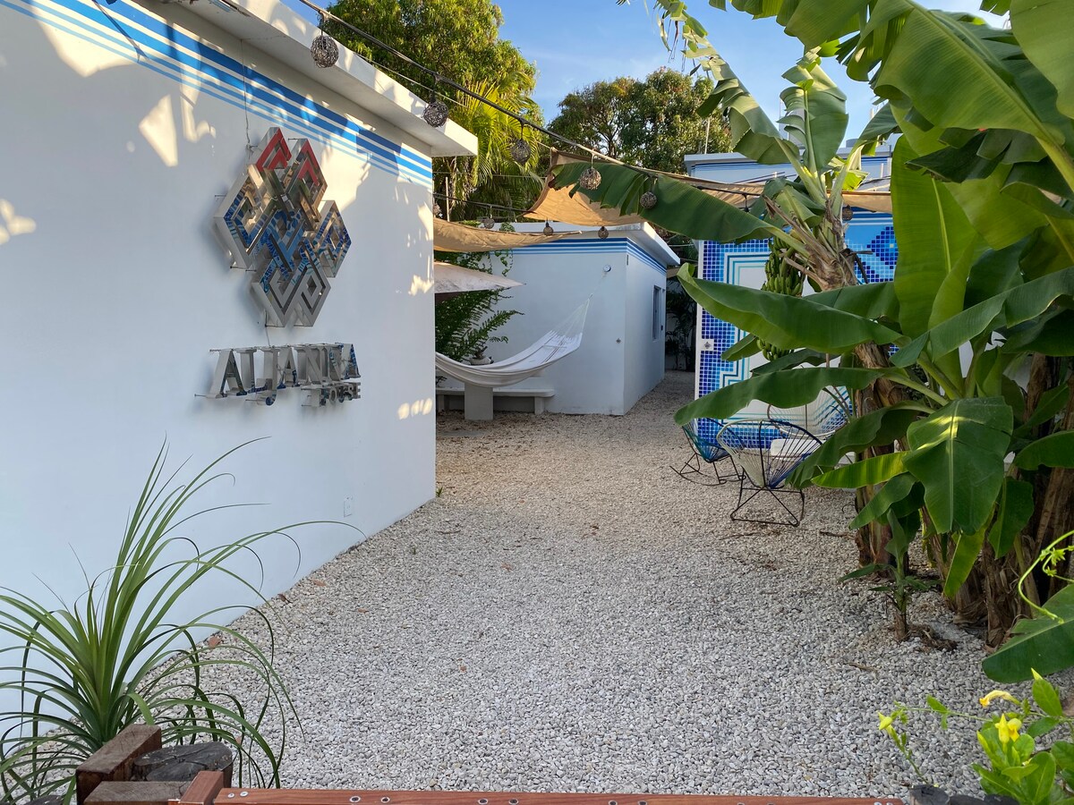 Aljanna House Bacalar, ubicado a unas cuadras de la terminal de autobuses y a 10 minutos caminando de la laguna, es el lugar perfecto para disfrutar en este paraíso del Caribe mexicano. Desde 2019 recibimos viajeros con un ambiente cómodo y familiar. Nuestras habitaciones están diseñadas para ofrecerte el descanso que mereces, ideales para parejas, familias o grupos de amigos, además tu estancia incluye desayuno gratuito todos los días, para que comiences tus mañanas con energía y buen sabor.