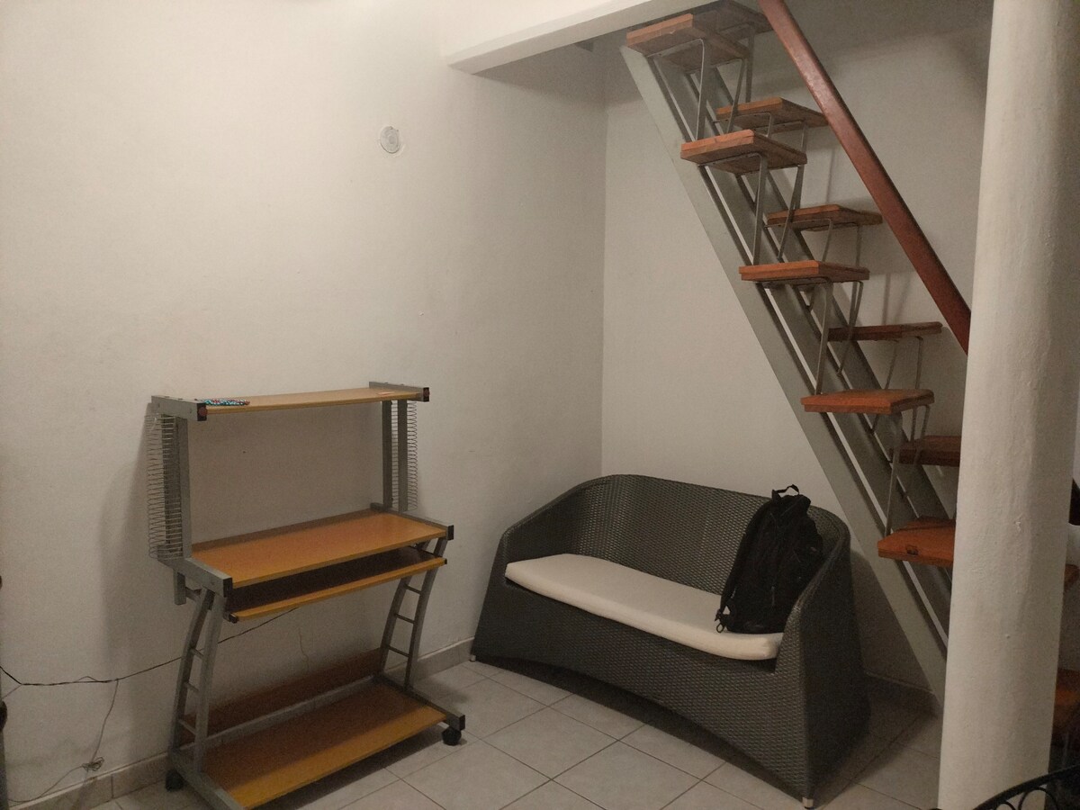 Disfruta de una experiencia con estilo en este alojamiento céntrico tipo ”Loft", nuevo decorado, amplio y moderno con cocineta, refrigerador , desayunador, sala , un baño y medio, Tv con cable, wifi, aire acondicionado, recamara con cama queen size. la parte de arriba tiene 185 cm de altura. Estamos cerca del centro, de oficinas de gobierno, del bulevar, y tiendas de convencia