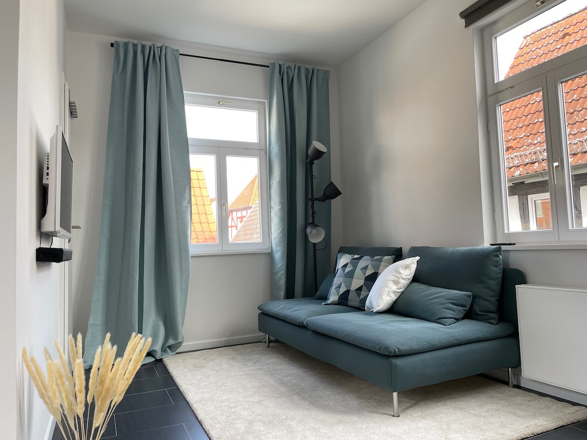 Nuestro apartamento de vacaciones (aprox. 35 m²) está situado en el centro del casco antiguo histórico de Butzbach, la perla de Wetterau. La plaza del mercado medieval con sus casas históricas de entramado de madera es una de las más bellas de Alemania. El apartamento tiene una entrada independiente con videoportero. Gracias a su céntrica ubicación, se puede ir andando a todas las tiendas, cafeterías y restaurantes. La estación de tren está a 3 minutos a pie.