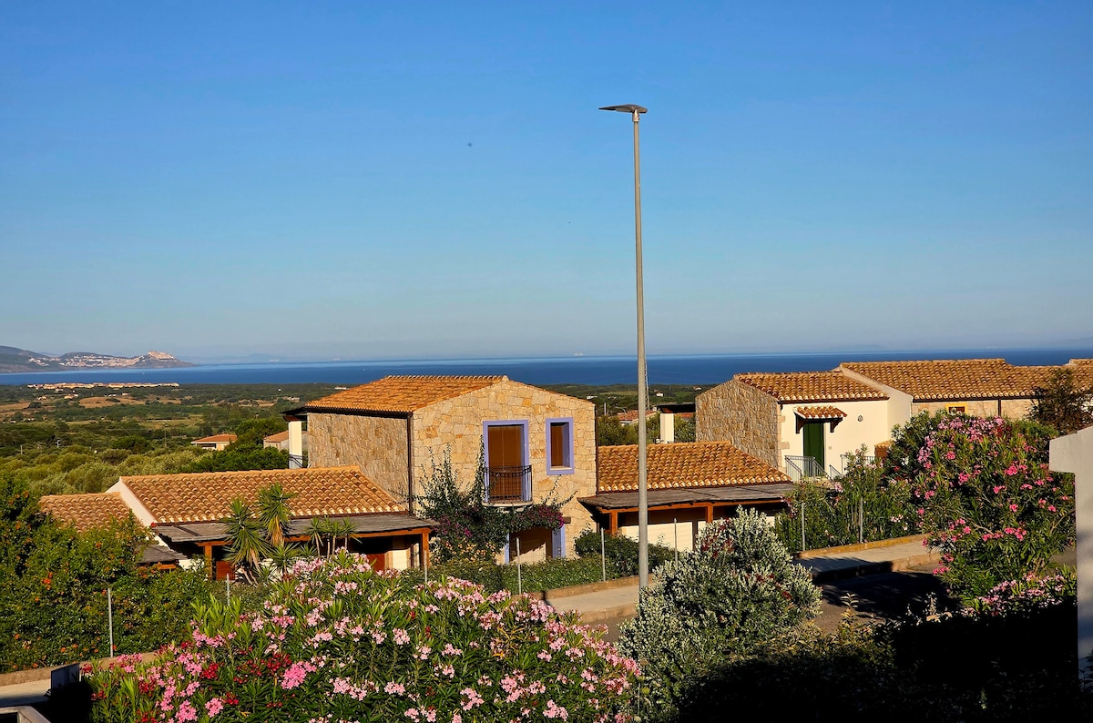 Med en fantastisk utsikt över vinlundar och hav ligger vår lilla Sardinska pärla. Lägenheten är på 42m2 med en stor terrass mot havet. På terassen sitter man gärna och äter middag i solnedgången, grill finns. Lägenheten består av ett sovrum med dubbelsäng och en bäddsoffa i vardagsrummet/ köket. Vi har en liten pool på området som ni kan nyttja. Lägenheten ligger 900m från byn Badesi. I Badesi finns det 2 stora mataffärer, restauranger, caféer, bank och post. Det är 3 km ner till Badesistranden.