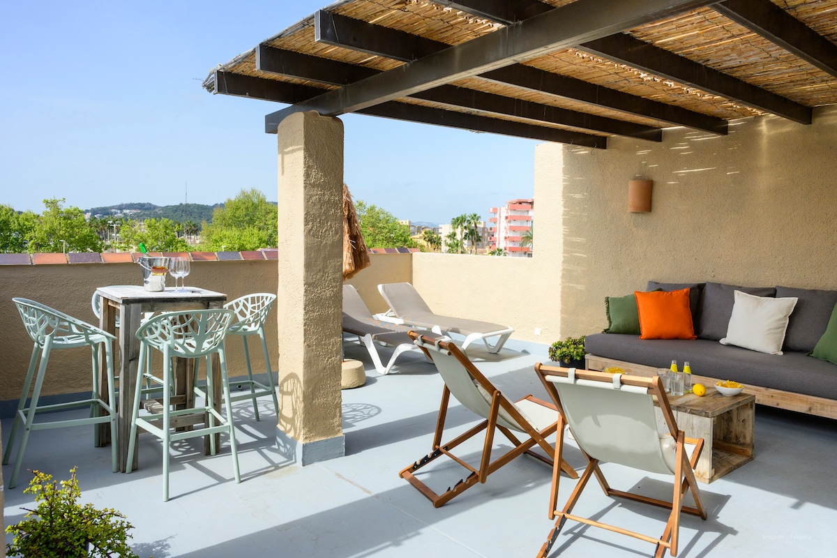Apartamento con terraza privada en la azotea a 50 metros del mar.