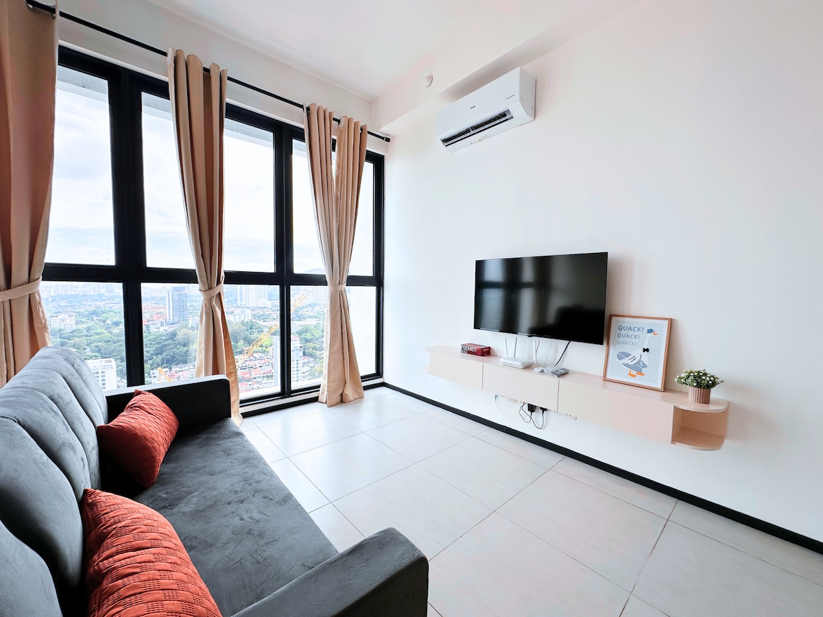 Bienvenido a Nest Getaway, ¡estamos encantados de ser tus anfitriones! ¡Nuestro «nido» se ha mejorado con una silla de masaje! ¡Una ubicación conveniente justo al lado de la carretera principal a la ciudad y el puente de Penang! (Jelutong, Penang) Nuestro acogedor refugio es perfecto para alojar de 4 a 5 personas. El interior cuenta con una decoración absolutamente digna de Instagram. Hemos incluido una colección de juegos de mesa y cartas para asegurarnos de que te lo pases de maravilla con tus seres queridos. ¡Estamos deseando que tu estancia sea realmente inolvidable!