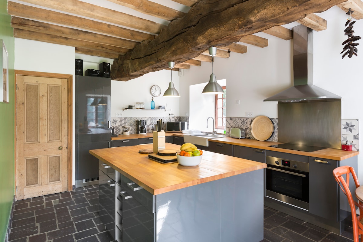 Primera de nuestras 2 casas rurales ubicadas en una propiedad de 1 ha (cada casa tiene su propio anuncio): Antiguo horno convertido en casa independiente de 65 m2 con chimenea, spa completo (sauna, baño turco, jacuzzi) TOTALMENTE PRIVADO. Toallas de baño y de tocador, sábanas incluidas, (batas no incluidas), desayuno sin cargo adicional (dejado en su puerta), parrilla (carbón no incluido).