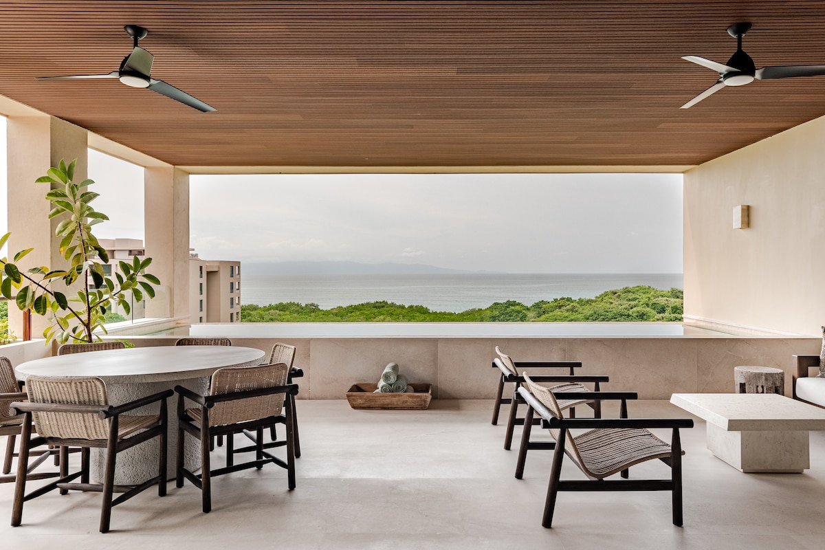 Casa Juntos is a luxury ocean-view villa in the exclusive Iyari community, designed for seamless indoor-outdoor living with panoramic Litibú Bay views. Enjoy a private infinity pool, expansive terrace with wet bar and grill, Sonos sound, family-friendly amenities, high-speed WiFi, and an 8-seater golf cart. Perfect for guests seeking refined comfort, curated service, and effortless Punta Mita living.