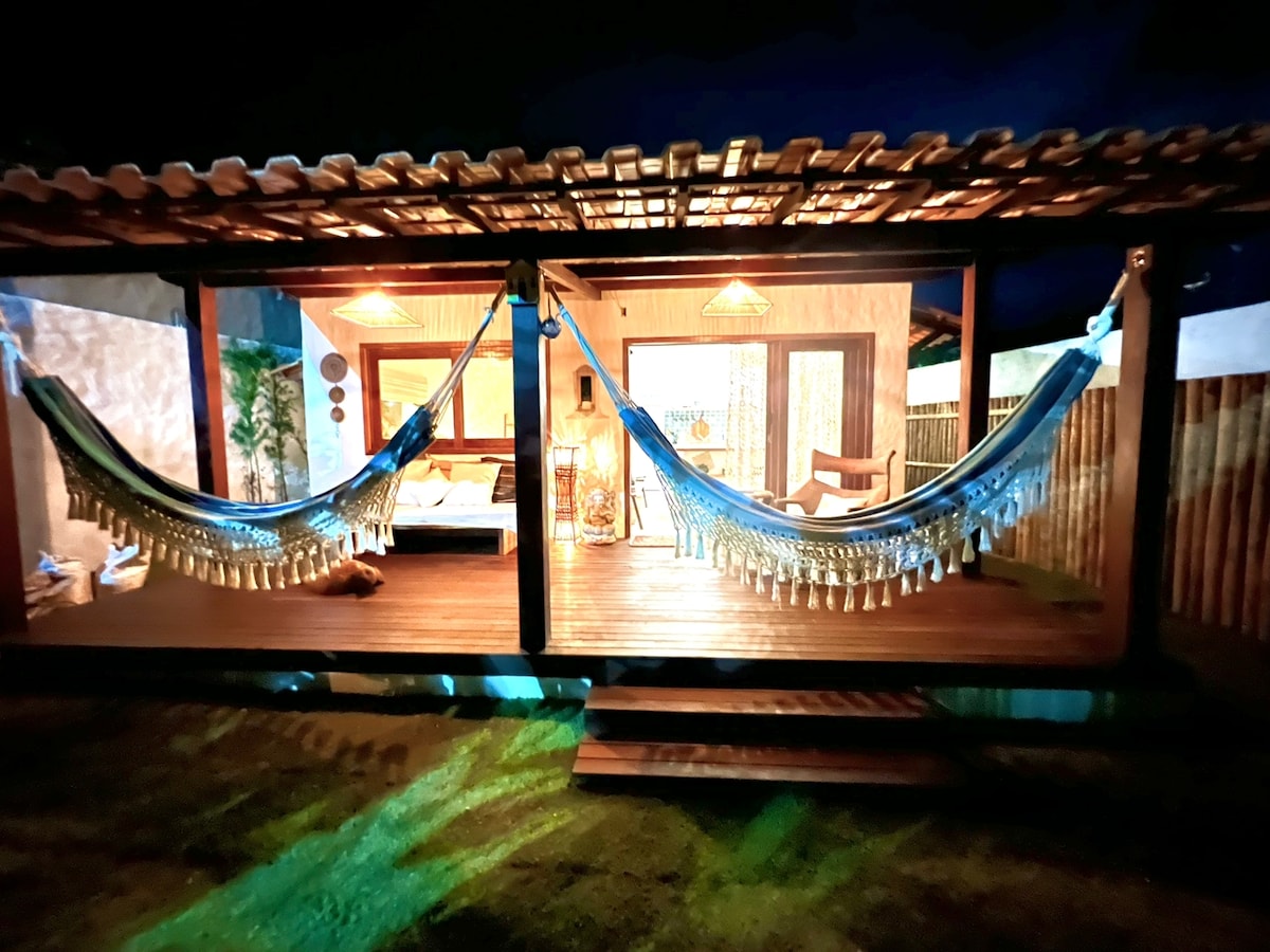 ⸻ ✨ Casa Canto da Sereia (Casa de la esquina de la sirena) ✨ Un refugio bohemio con alma balinesa, pensado en cada detalle para recibirte con encanto y comodidad. La habitación amplia, luminosa y con aire acondicionado aporta la comodidad de una hamaca. El salón, decorado en estilo balinés, tiene un sofá cama, mientras que la cocina práctica y equipada te invita a disfrutar de sabrosos momentos. El gran balcón, con hamacas y muebles acogedores, es puro descanso. En el corazón del pueblo de Moreré, a 3 minutos de la playa y cerca de todo lo que necesitas. 🌴🌊