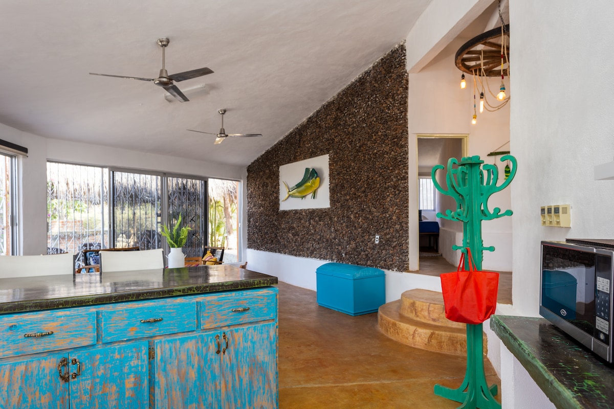 Your perfect getaway 5 minutes from Cerritos beach! Casa Pakal brings a unique experience with a lot of Privacy, tranquility and peace! It is the perfect place to rest enjoying nature in Baja and the waves of the Pacific Ocean. It also provides the opportunity to work from the comfort of this cozy place with a fast and reliable Internet connection. You can learn more about us in Beach Cottage Chronicles Season 4 ( on Max) Lili and Olaf will be happy to welcome you at Casa Pakal!