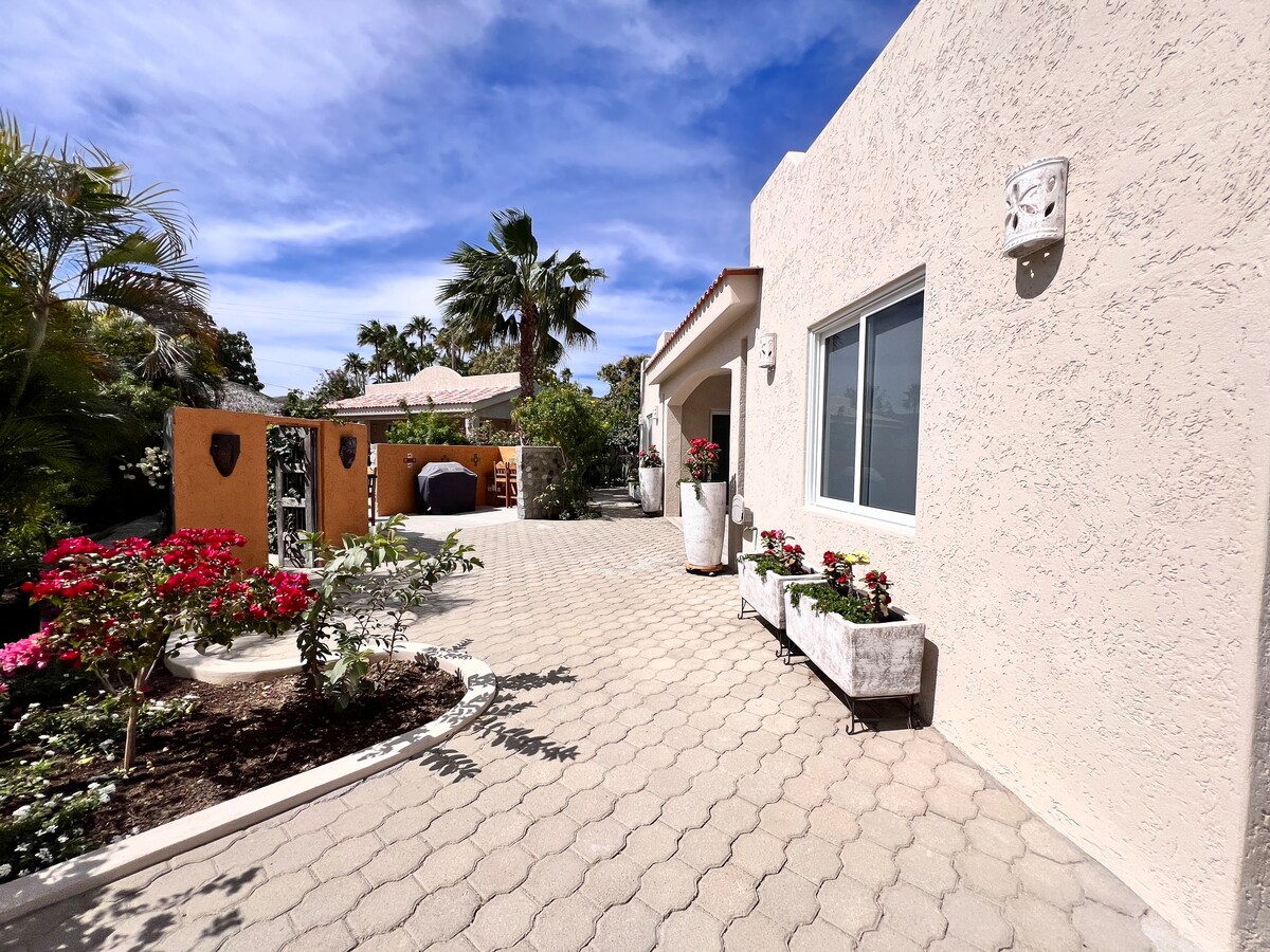 CASA MANGO se encuentra en 3 casas ubicadas en un acre de exuberantes jardines con Casa Vieja Villa. El santuario privado está a pocos minutos de la impresionante playa de arena blanca de Los Barriles. La casa tiene capacidad para 4 personas, dos camas tamaño king, 2 baños, televisor inteligente, Internet. Relájate en nuestras cómodas tumbonas y refréscate en la espaciosa piscina y el jacuzzi. En el centro de las tiendas, restaurantes, rutas de senderismo, pesca deportiva, kitesurf, esnórquel y canchas de pickleball.