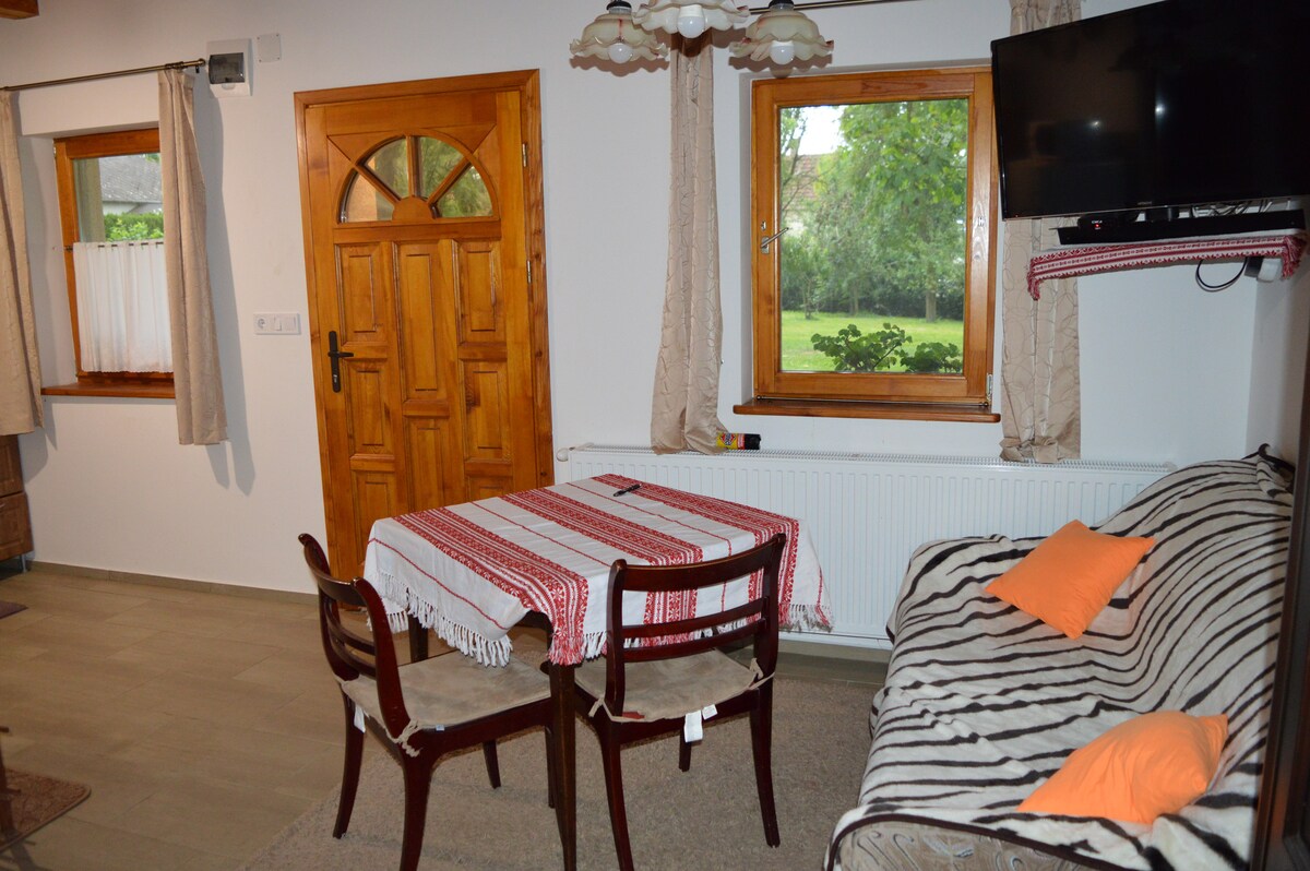 Lejos de la carretera y del ruido del mundo, en el bosque se encuentra la casa de adobe blanco de Kereseszeg. Hemos conservado los edificios antiguos: la casa y el establo han renacido como una casa de huéspedes moderna, cómoda y sencilla. Sala de estar con sofá cama, donde puede caber cómodamente 1 persona más. Rincón de lectura, cocina, mesa de comedor. Dormitorio con cama doble grande. Baño moderno. El antiguo establo se ha convertido en un apartamento con baño privado. Terraza cubierta, comedor, parrilla.