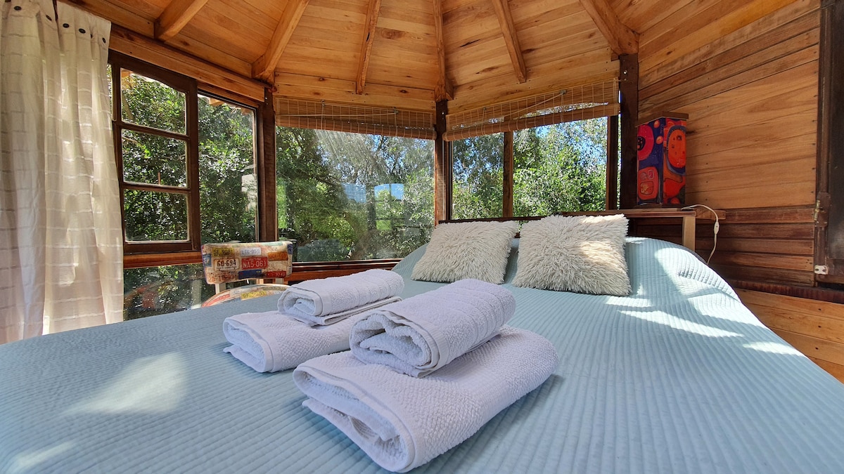 Relájate en esta escapada única y tranquila. El octógono, construído totalmente en madera se encuentra ubicado en la cumbre del barrio Sierra de los Padres. Un espacio reservado e íntimo, inmerso en un bosque natural. Ideal para parejas que buscan escapar del ruido, vivir un momento único, romántico e inolvidable. Perfecto para conectar con la naturaleza en su máxima expresión, disfrutar del sonido de las aves y los atardeceres. Piscina compartida, wi-fi, AA Split, tv led 43', espacio de fogón.