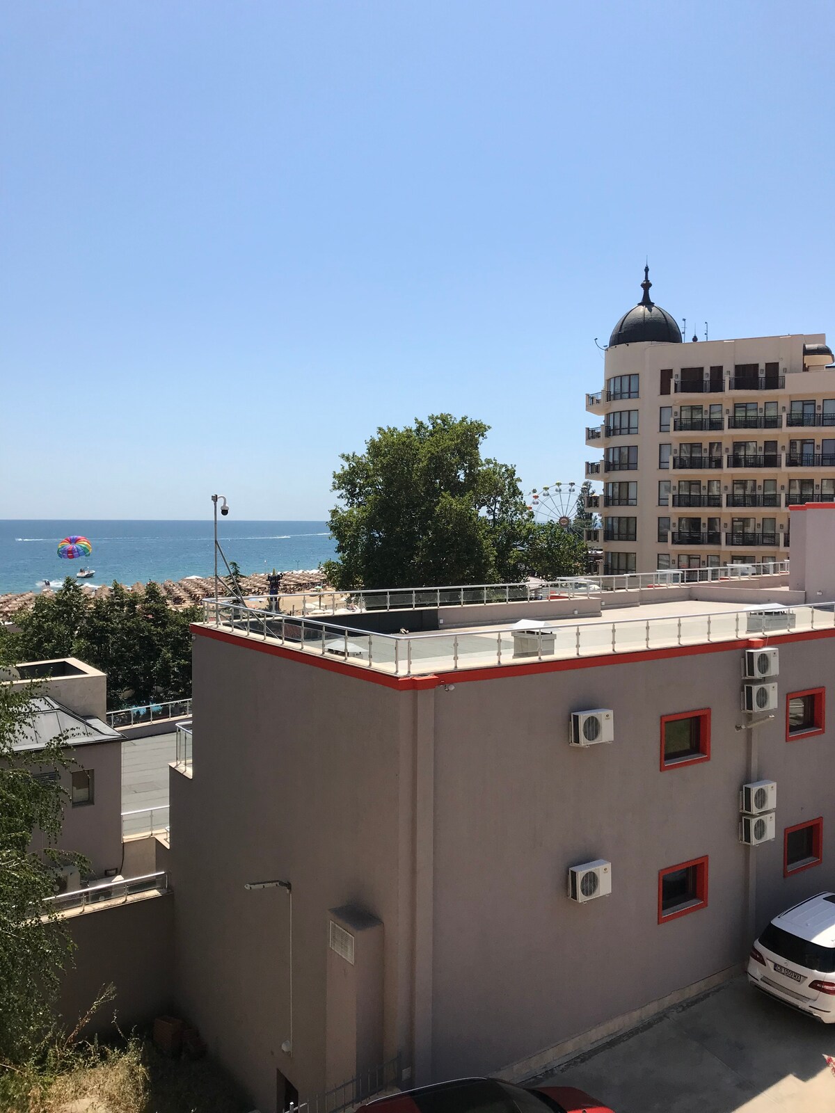 Golden Sands es una mezcla única entre naturaleza y entretenimiento. Nuestro apartamento tiene una gran vista al mar desde los dos balcones e incluso cuando está sentado en el sofá. A solo 1 escalera de la playa, a unos 100 metros (o puedes tomar la carretera asfaltada). El entorno directo es tranquilo y verde. Estacionamiento vigilado en frente| Recepción (24 horas) | Restaurante italiano || Bar de cócteles | Dos grandes piscinas y piscina para niños | tumbonas gratuitas | Mesa de billar| Fitness| Masajes | muchos restaurantes a lo largo de la playa