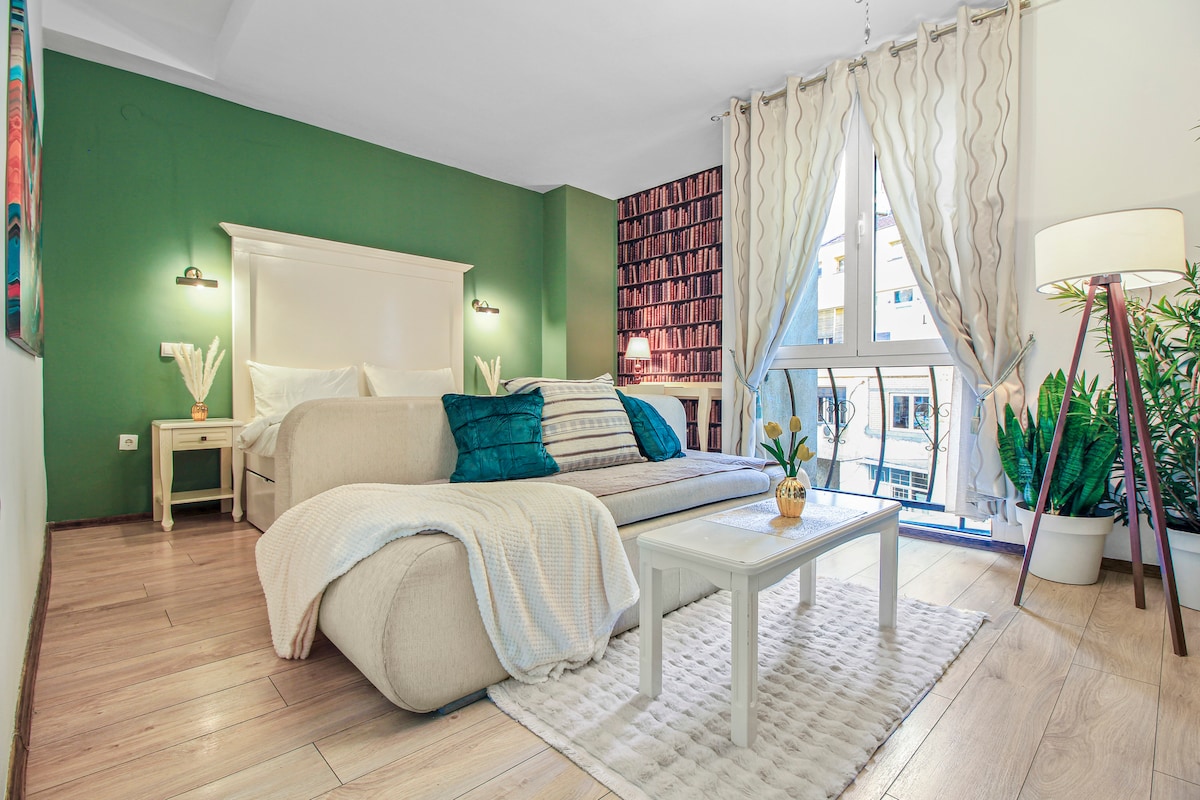 Intimate apartment in the heart of Skopje, just a 2-minute walk from Macedonia Square. This modern space blends contemporary comforts with elegance, offering a unique and cozy atmosphere. Located in the iconic “Gradski Zid” building, designed by the renowned architect Kenzo Tange, the apartment provides both history and convenience right at your doorstep. Perfect for travelers who want to experience Skopje’s city center with ease.