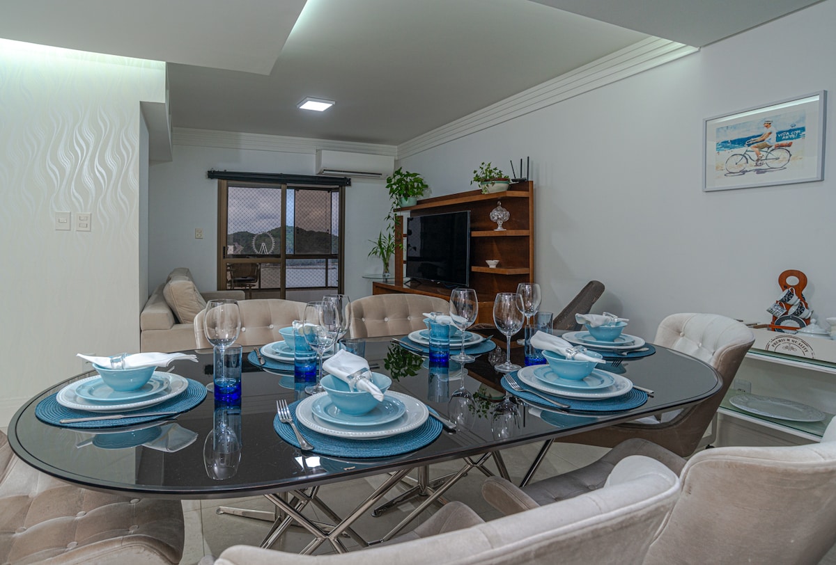 Incredible apartment in Balneário Camboriú, with beautiful views of the entire beachfront. Space with a suite and two bedrooms with private bathroom, large living room, equipped kitchen and balcony facing the sea. Living room and bedrooms recently renovated and air conditioned, high quality mattresses, new furniture and fixtures. Three private and covered parking spaces. We provide bed linen for all beds and one bath towel per guest.