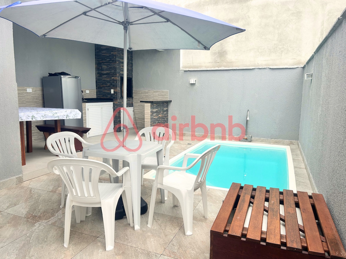 Casa com piscina, churrasqueira e 3 quartos com ar