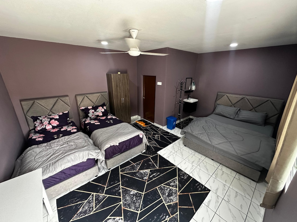 18Homestay @ Taman Keladan Dream, Temerloh. Casa # 2 plantas con 6 dormitorios y 5 baños que es adecuada para familias y grupos de amigos para reunirse # Solo se tarda 3 minutos en llegar a la plaza, a 5 minutos de Gobang Maju, a 10 minutos en auto de la ciudad y a 20 minutos del hospital (HOSHAS). # Toallas proporcionadas con jabones corporales y champú,plancha, microondas, hervidor y utensilios básicos de cocina # Cerca de mercados de comestibles, lavandería, mezquita # Ubicado en una nueva zona residencial, por lo que el lugar es tranquilo y pacífico.