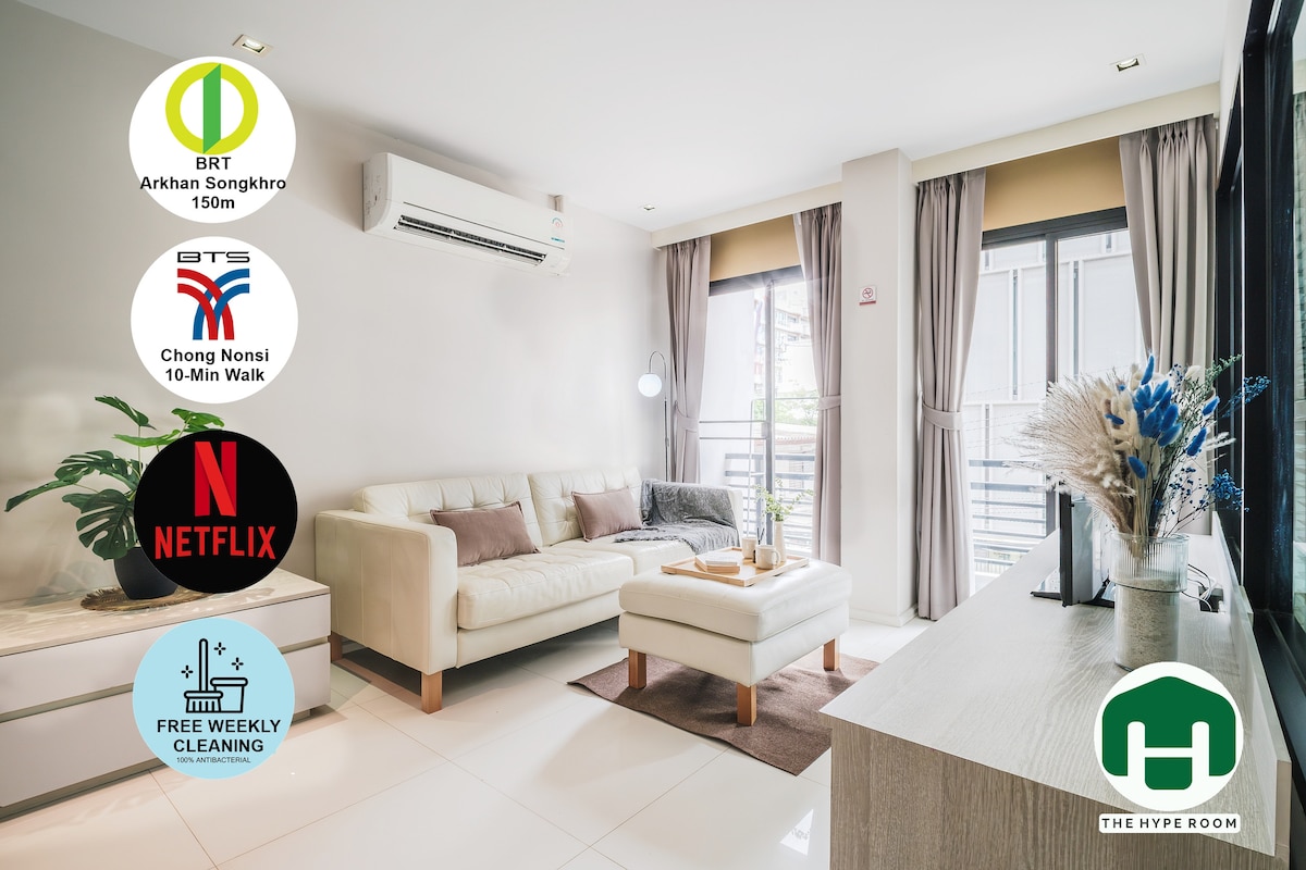 2 dormitorios/1 baño en Sathorn, cerca de BTS/BRT, limpieza semanal gratuita