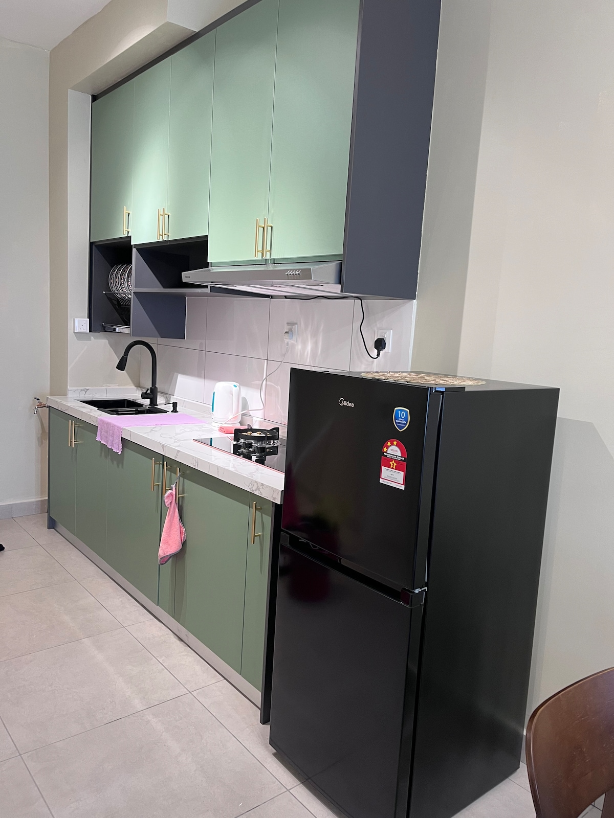 Unit Highlights: 1. Clean, modern, and Stylish Design 2. Air-conditioned unit 3. Comfortable bed 4. High-speed Maxis Home fibre WiFi 5. Smart TV with Netflix account provided 6. Clean bathroom with basic toiletries 7. Simple kitchen setup for cooking Location: 1. Located just beside Bangi Central and Evo Mall 2. Surrounded by shops, cafes, and restaurants 3. Easy access to main roads and highways Guest Experience: 1. Self check-in with clear video-guided instructions (No Receptionist)