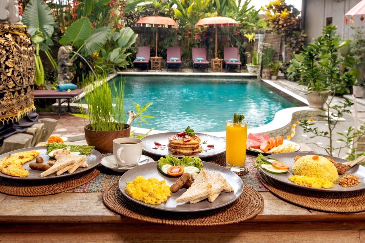 We offers clean, comfortable rooms with air-conditioning, private bathrooms, and free WiFi. Each room includes a terrace, kitchenette, and modern amenities such as a refrigerator, stovetop, and TV. Guests can enjoy a year-round outdoor swimming pool, perfect for relaxation. The hostel provides free WiFi, ensuring connectivity throughout the stay. Place is close to attractions like Ubud Palace (2.5 mi), Saraswati Temple (2.5 mi), and Monkey Forest Ubud (2.7 mi).