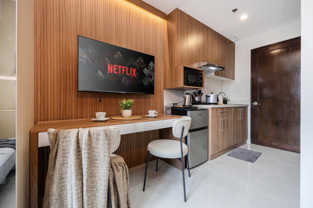 ¡Te damos la bienvenida a tu acogedora escapada en Cebú! Este moderno estudio cuenta con una cómoda cama tamaño queen, wifi rápido, una cocina totalmente equipada y un balcón privado con impresionantes vistas a la montaña, perfecto para trabajar y relajarse. Disfrutá de Netflix en un televisor inteligente, prepará comidas en la cocina o salí a tomar un café con vistas. La unidad se encuentra cerca de IT Park, Ayala Central Bloc, Banilad Town Center, Streetscape Mall y 88th Avenue, rodeada de excelentes restaurantes y cafés.
